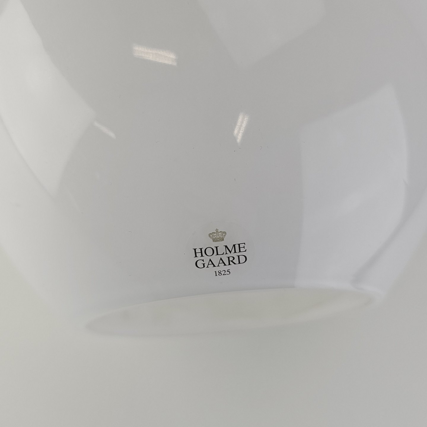 Pendel i hvidt mundblæst glas med blomstermotiver og monteret med lyserød ledning
