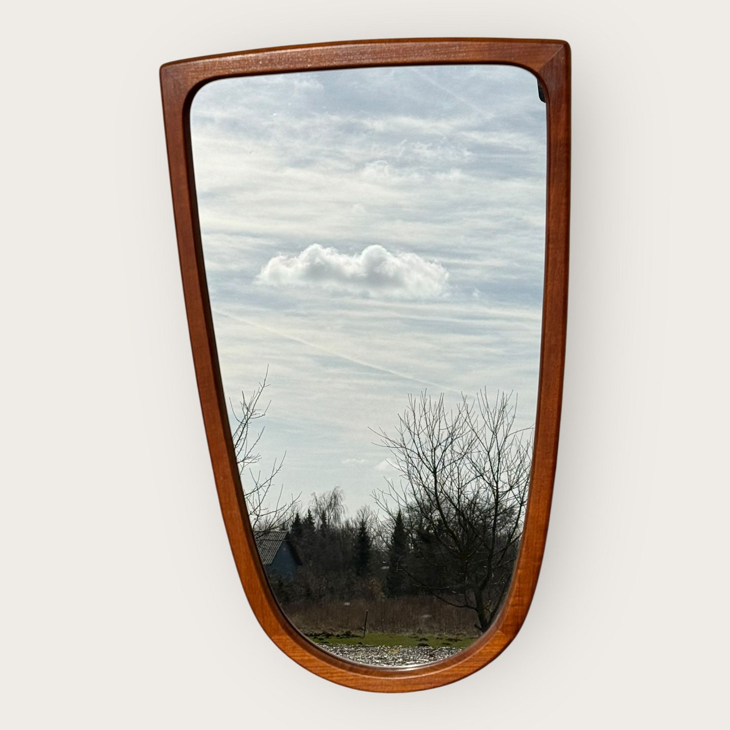 Spejl i ramme af teaktræ med flot facon, Danish modern fra 1960'erne, Pæn stand, Mål: 75x46cm *Pæn stand*