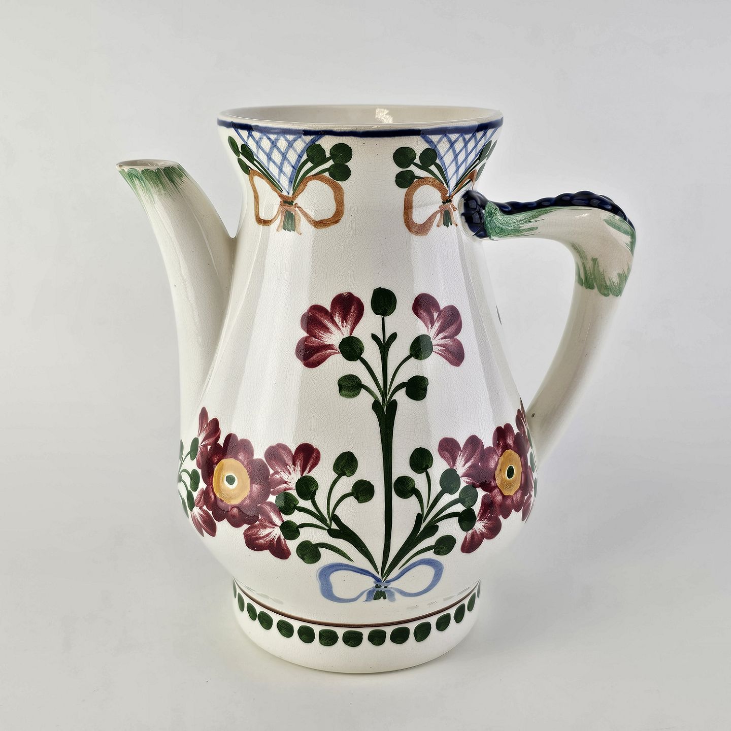 Servantekande i fajance med blomsterdekoration