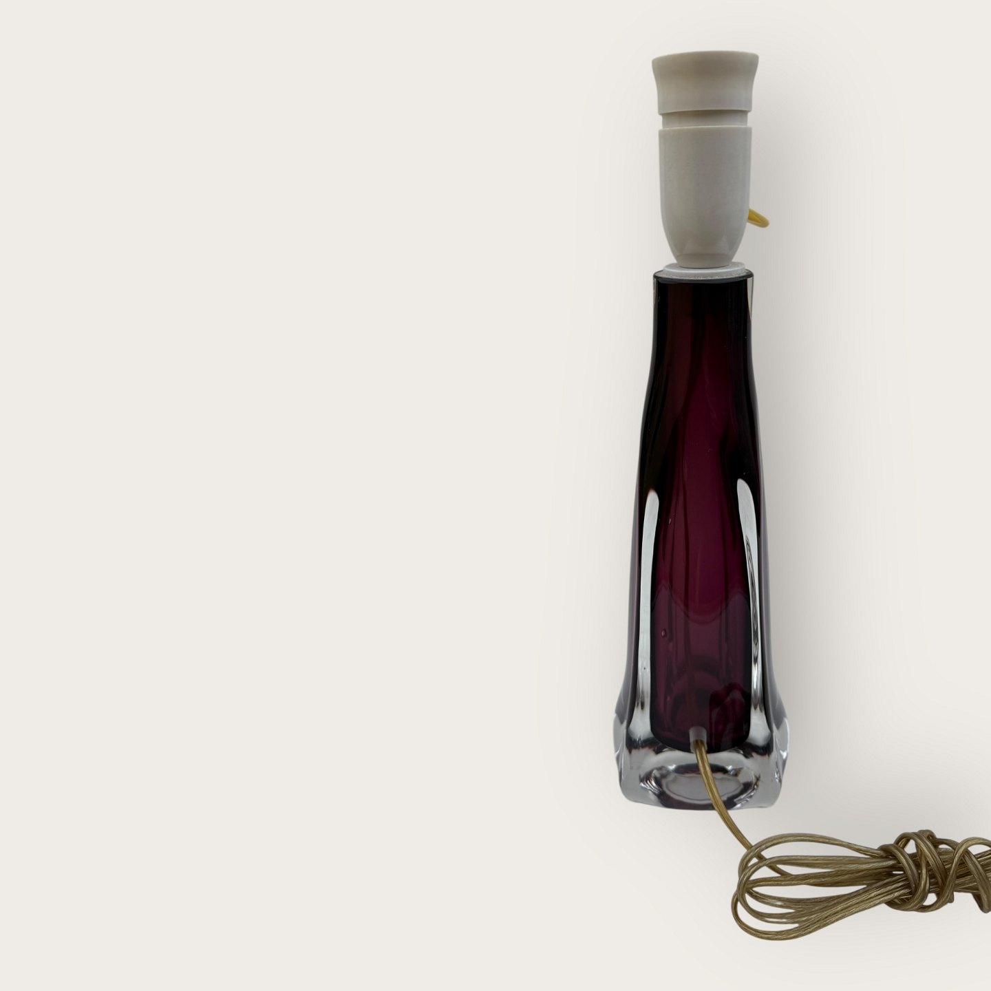 Glas bordlampe, sandsynligvis designet af Carl Fagerlund for Orrefors, utydeligt signeret i bunden (se foto), Højde med fatning ca. 36cm *pæn stand*