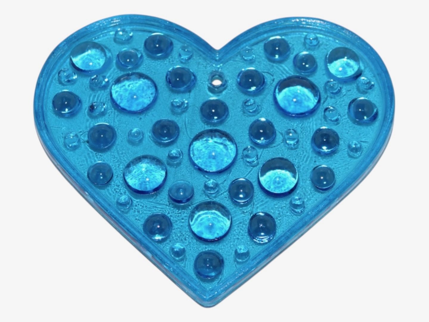 Glasværk fra Sverige, solfanger i form af blåt hjerte fra 1970'erne eller 1980'erne.