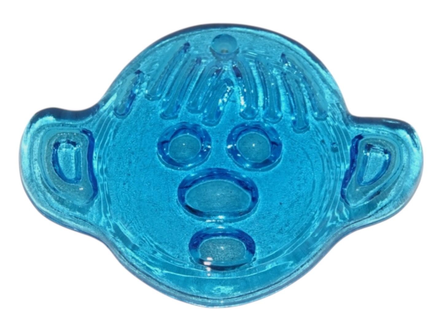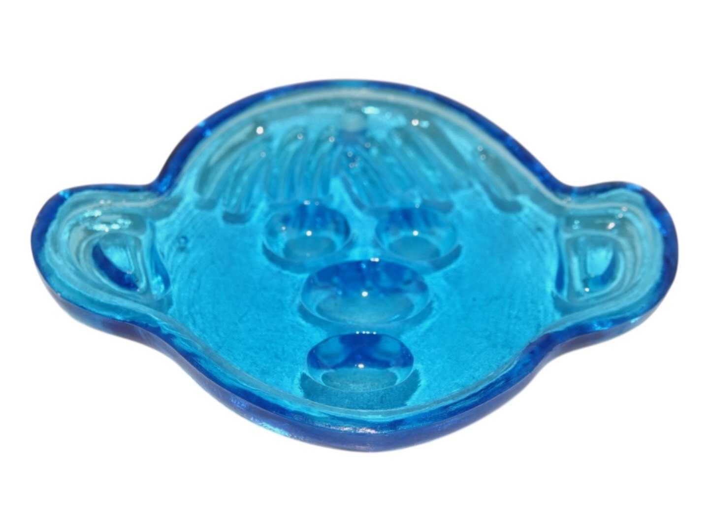 Glasværk fra Sverige, lyseblå solfanger i form af drengeansigt fra 1970'erne eller 1980'erne.