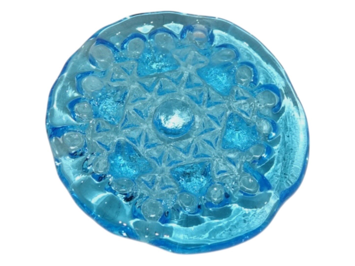 Glasværk fra Sverige, lille lyseblå solfanger fra 1970'erne eller 1980'erne.