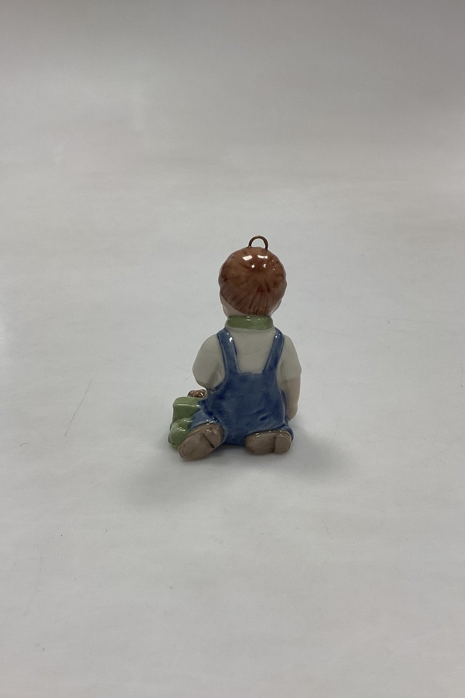 Bing og Grøndahl Collections 2001 Juleornament - Christian No. 743. Designet af Sven Vestergaard. Dreng med tog og egern. Figur til ophæng.