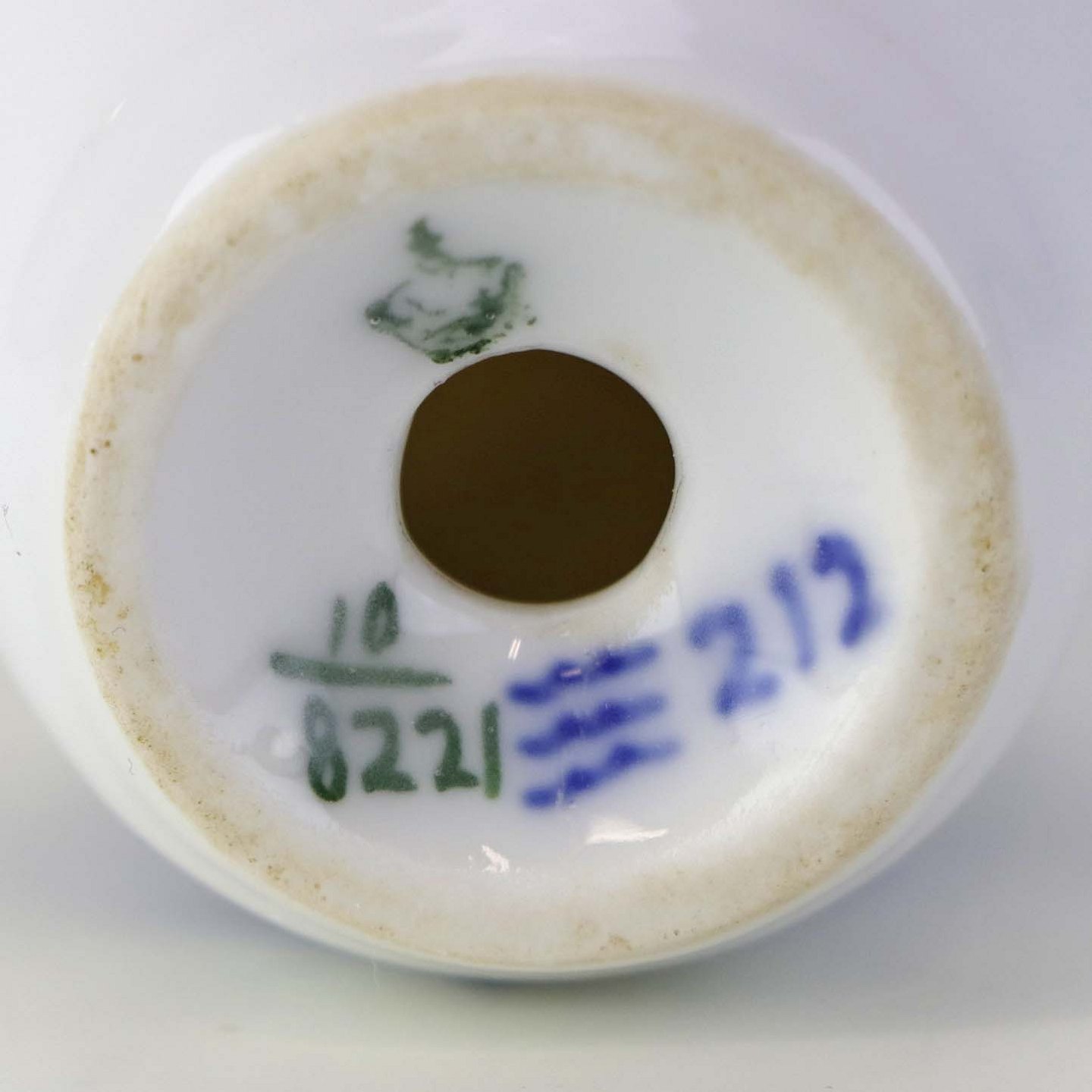 Service i glat hvidt porcelæn med flettet kant og dekoration af blå blomster.