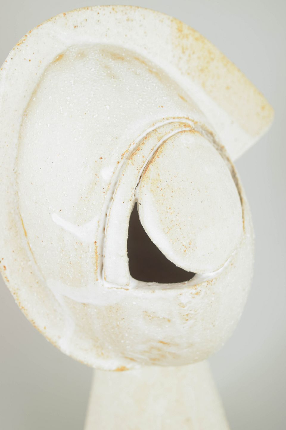 Christina Muff, dansk samtidskeramiker (f. 1971). Stort kubistisk unika ansigt med cremehvid mat glasur og farvede glasurløbere. "Fun times in moonshine" from the kilnfolk series.
