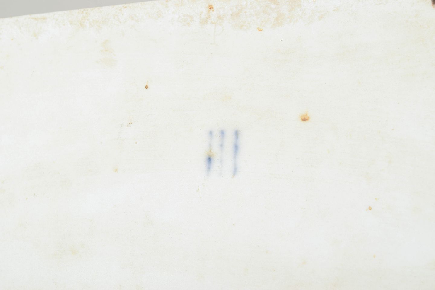 Rektangulært vægrelief i hvidt bisquitporcelæn med klassicistisk figurfrise efter Bertel Thorvaldsen, udført med fine detaljer og harmonisk komposition inspireret af antikkens formsprog.