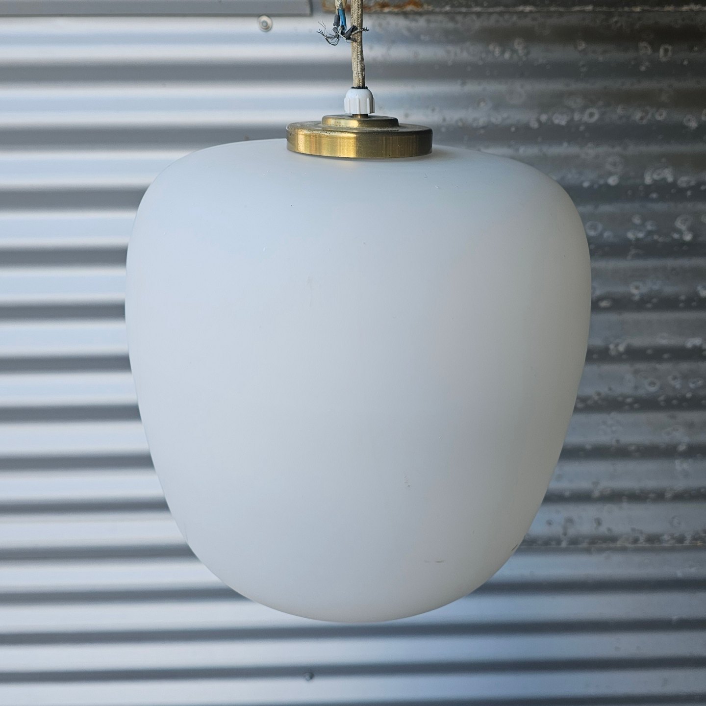 Pendel i hvidt opalglas med montering i messing