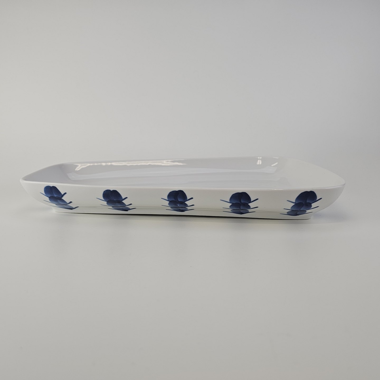 Asymmetrisk aflangt fad i porcelæn fra Stellet Danild 30, også kaldet Blomsterknop