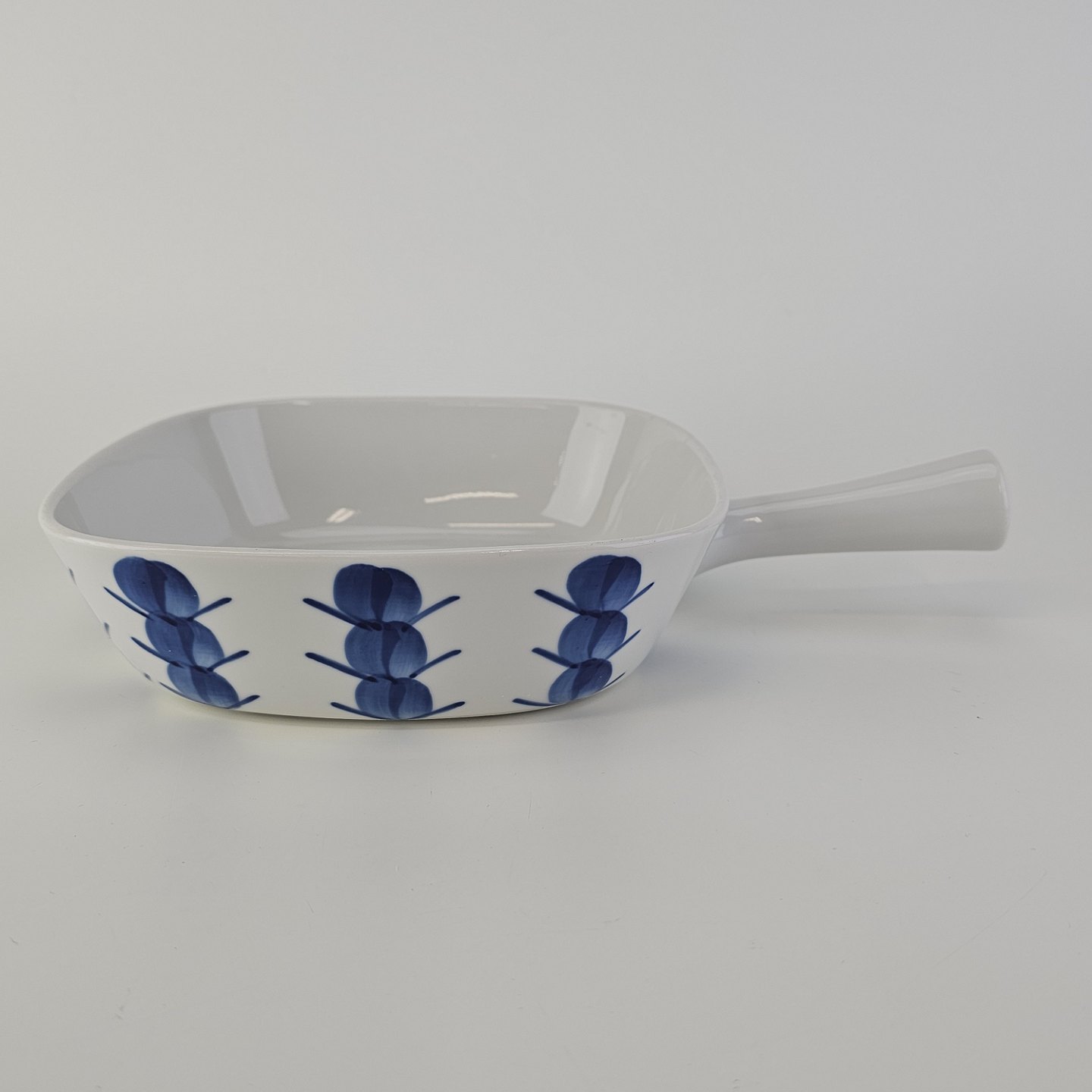 Skål med håndtag i porcelæn fra Stellet Danild 30, også kaldet Blomsterknop