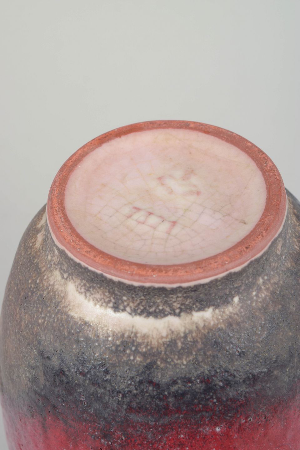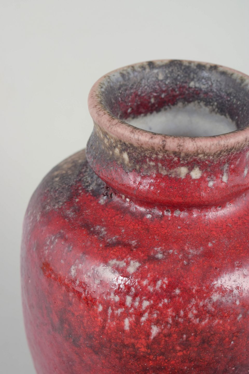 Vase i keramik med karakteristisk lava-glasur i dybrøde og mørke nuancer, med kraftig tekstur og organisk overflade. Model 7321.