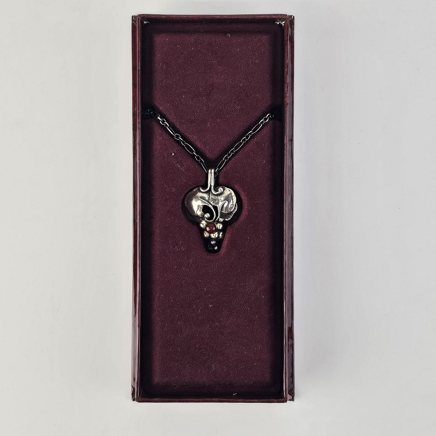 Vedhæng i sterling sølv med motiv af en klase druer, og karneol perle.