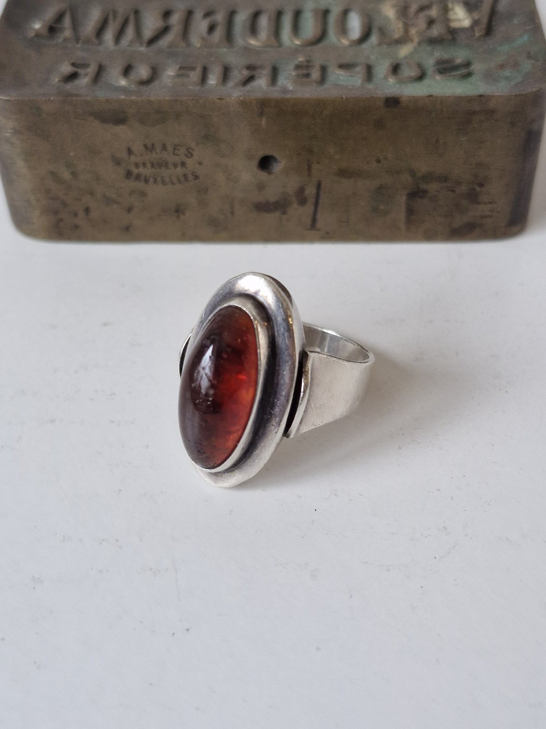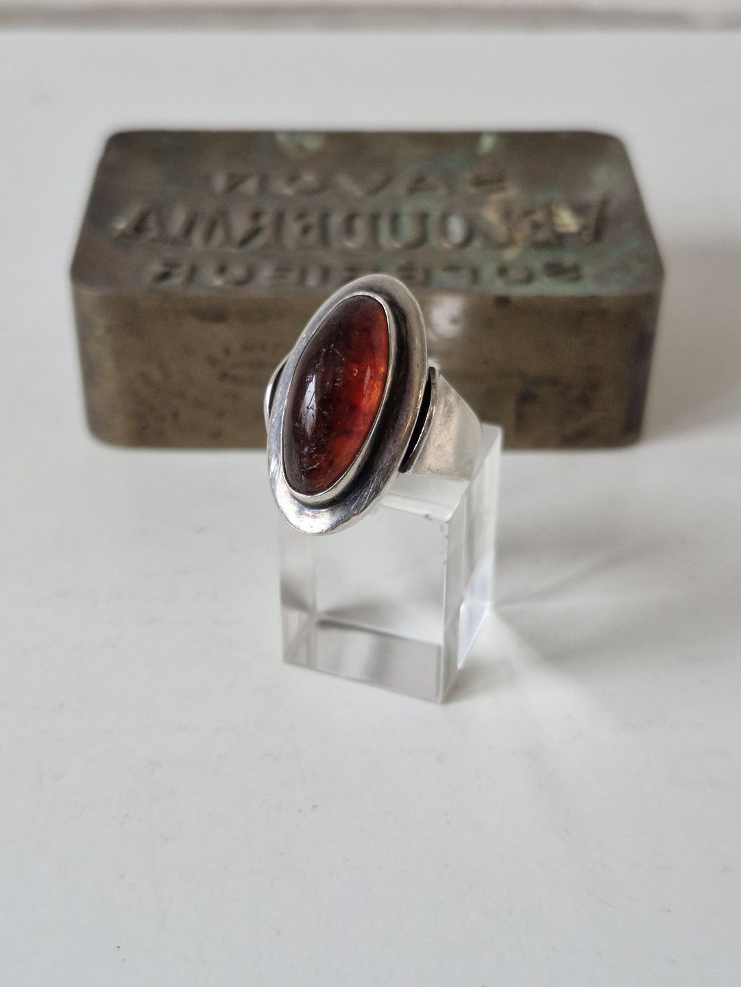 N.E.From vintage ring i sterlingsølv med rav