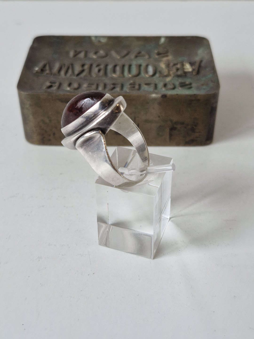 N.E.From vintage ring i sterlingsølv med oval ravperle