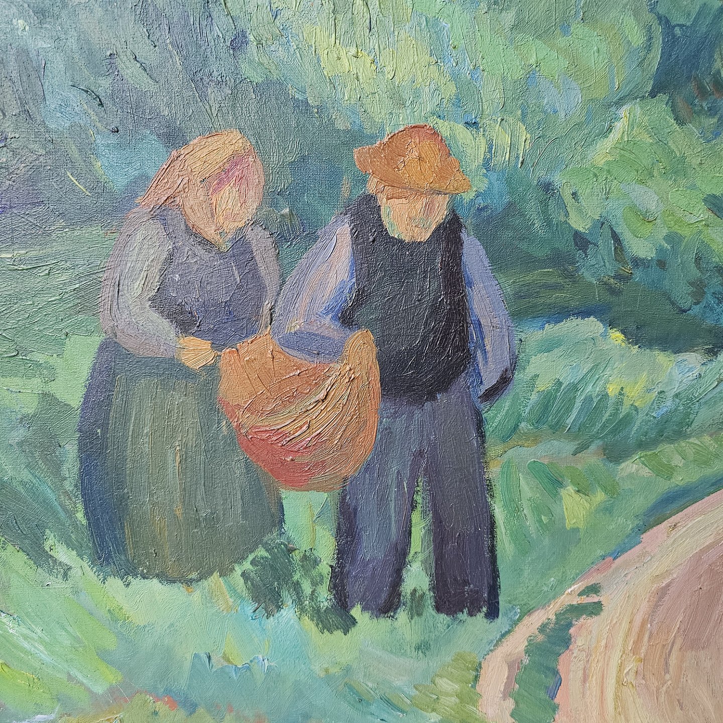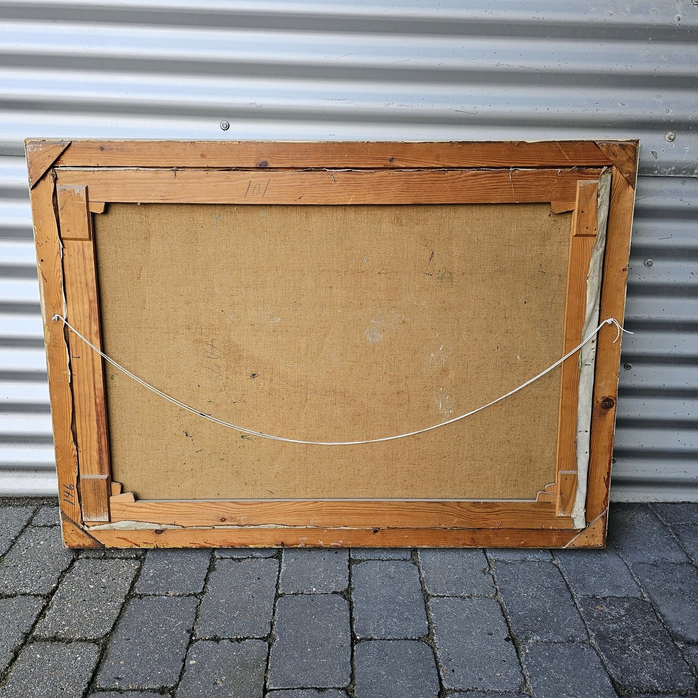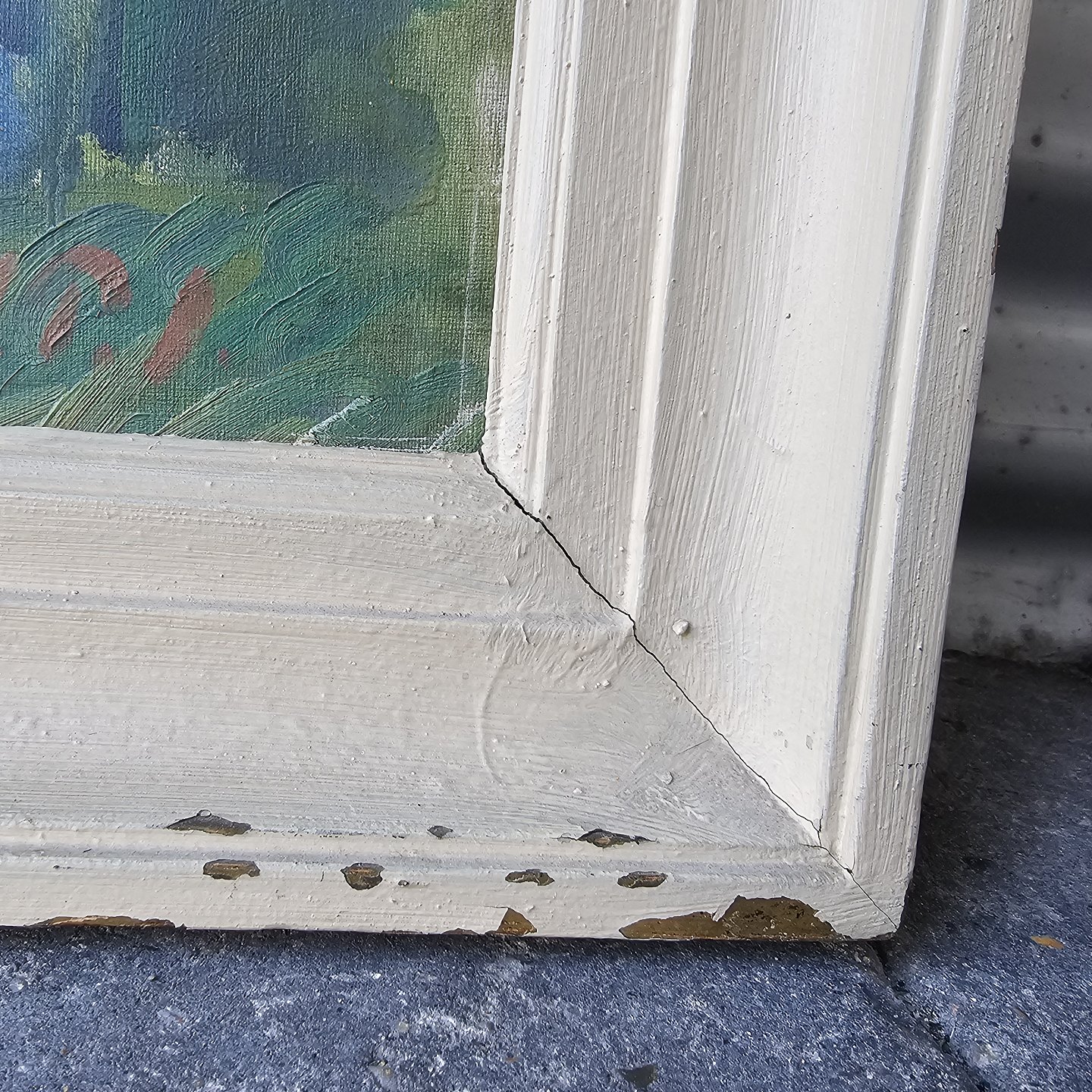 Oliemaleri på lærred monteret i hvidmalet ramme med motiv af en landevej