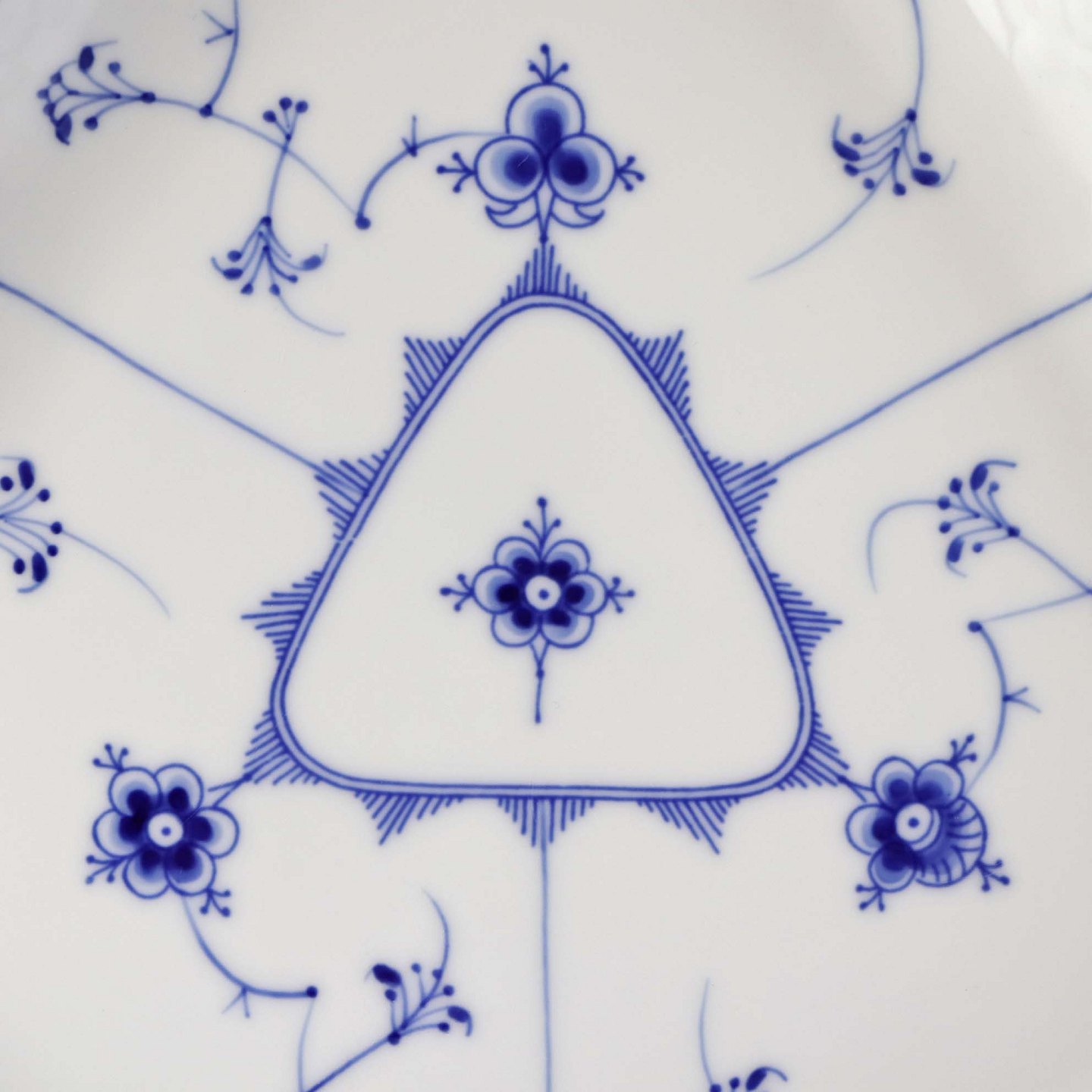 Trekantet kagefad i porcelæn fra stellet Blåmalet. Nr.40