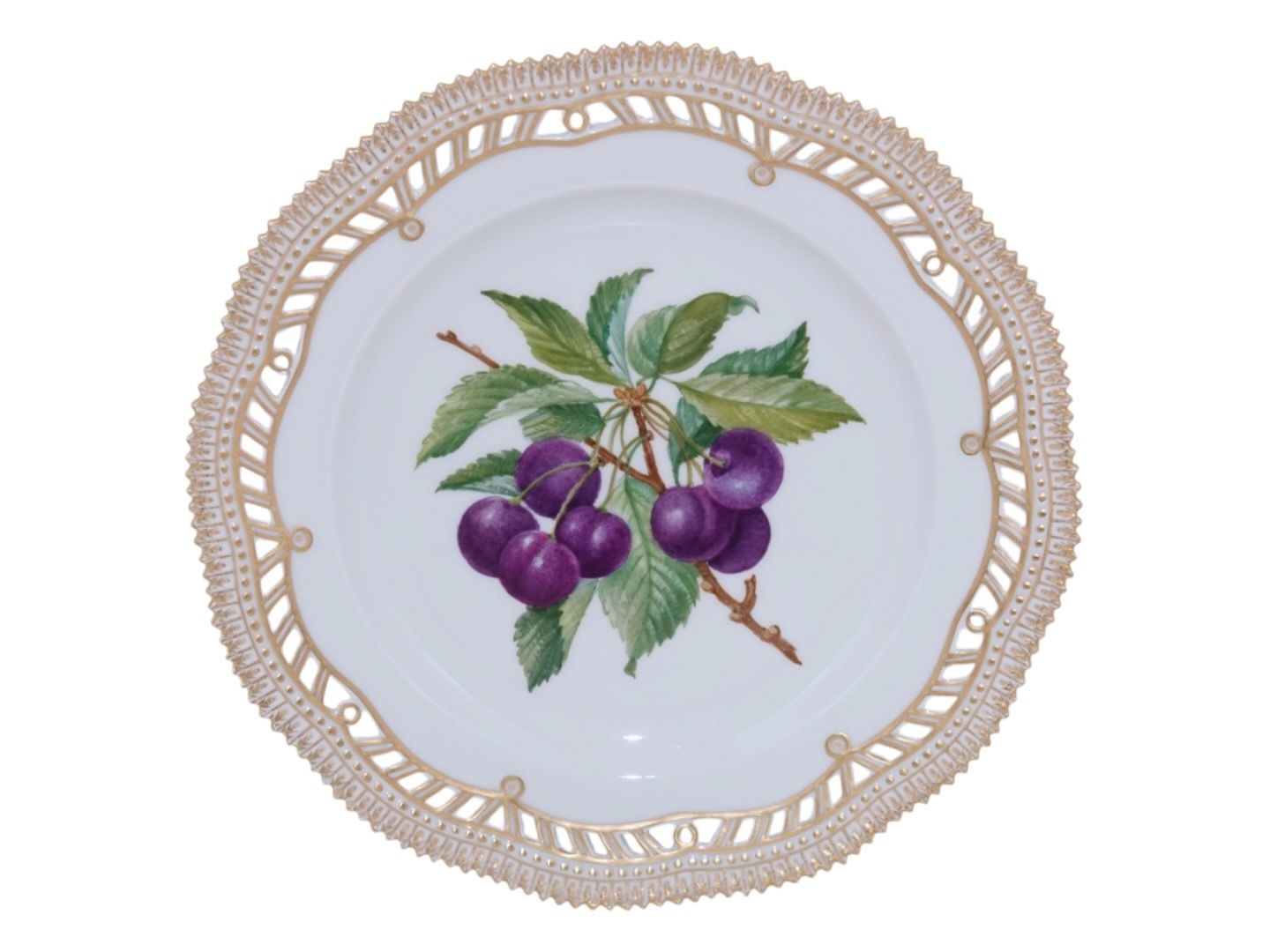 Frugttallerken med blommer og gennembrudt kant 22,5 cm. #3554