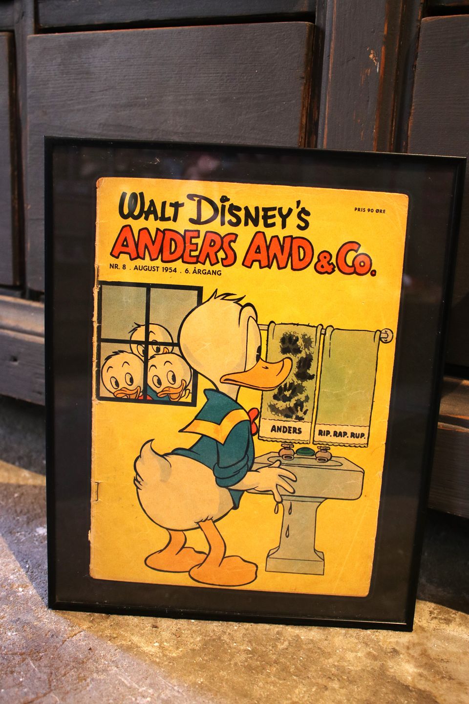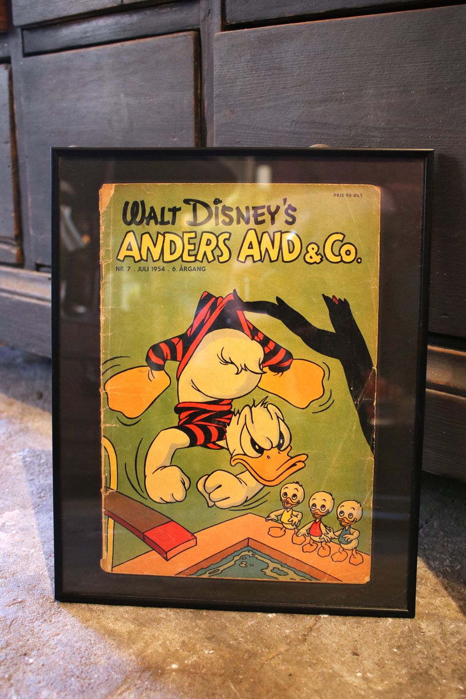 Dekorative , gamle Walt Disney Anders And blade fra årgang 1954 & 55 , er indrammet i sort ramme. 30x24cm...