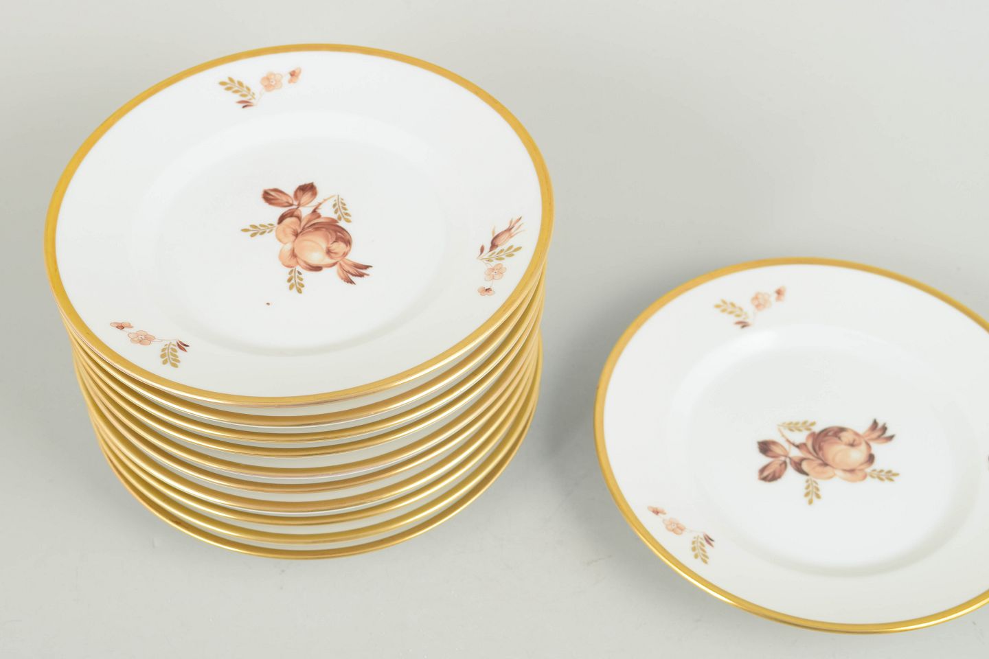Royal Copenhagen brun rose, sæt af elleve tallerkener.