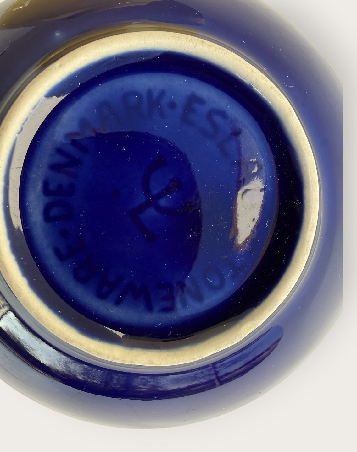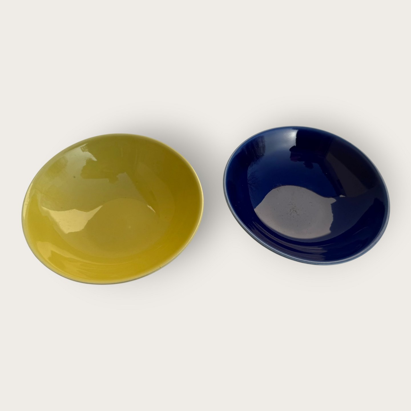 Eslau ceramics, two bowls: one blue and one yellow, 12cm in diameter *Good condition*