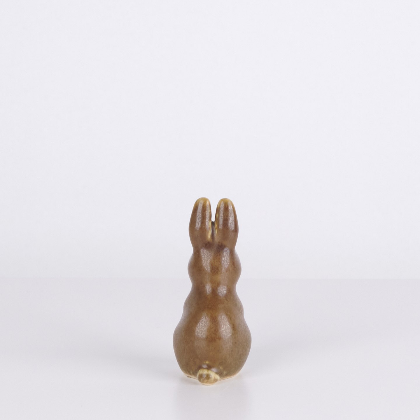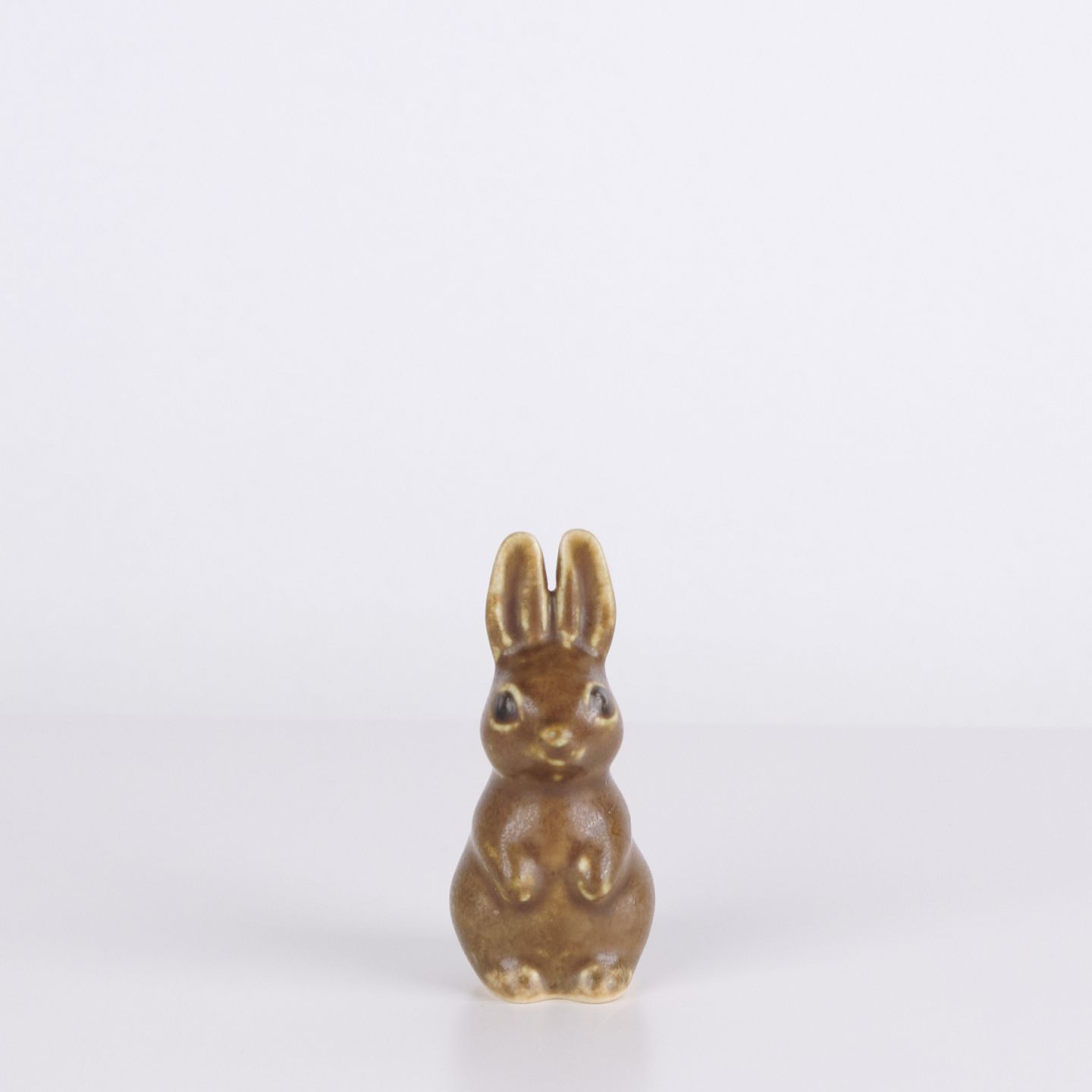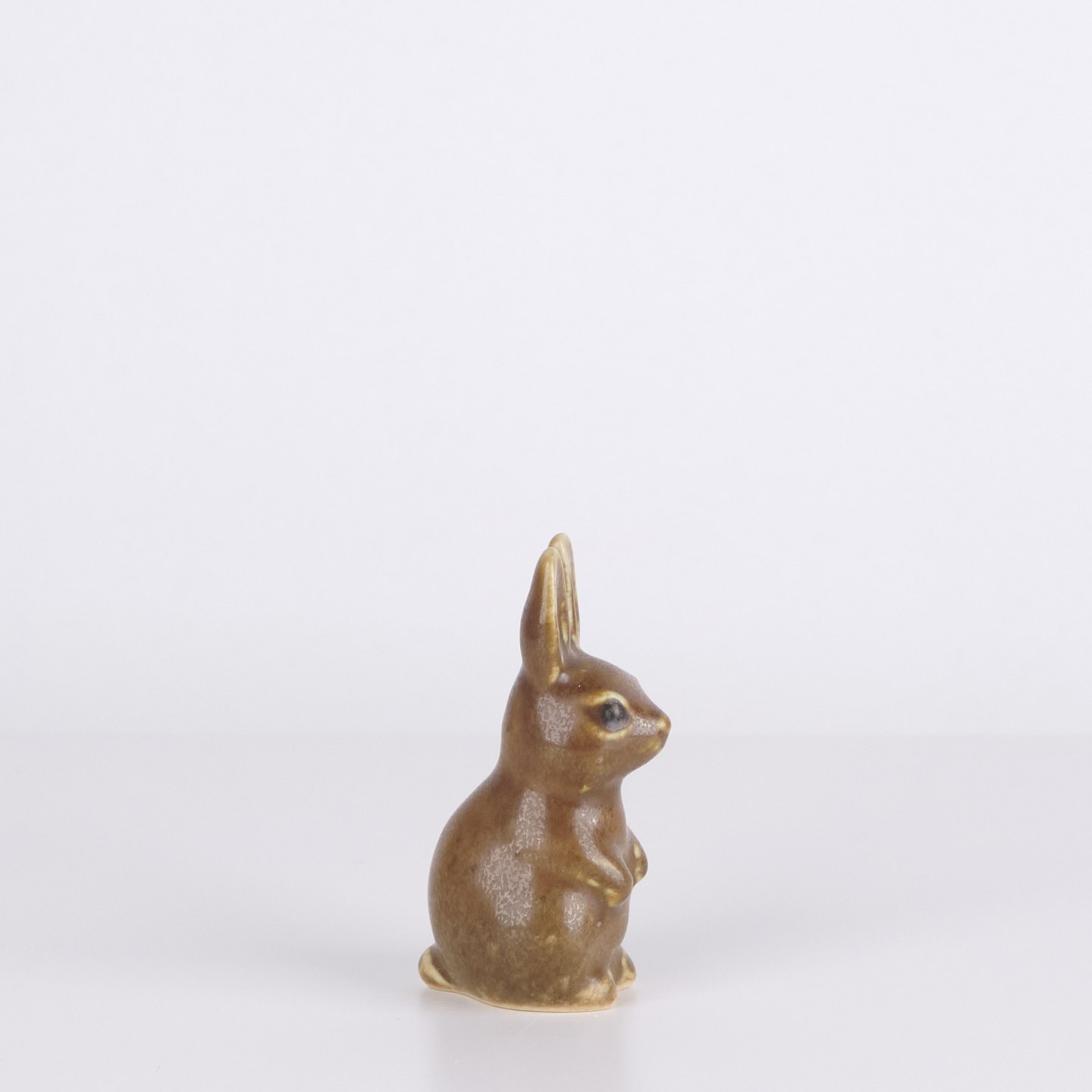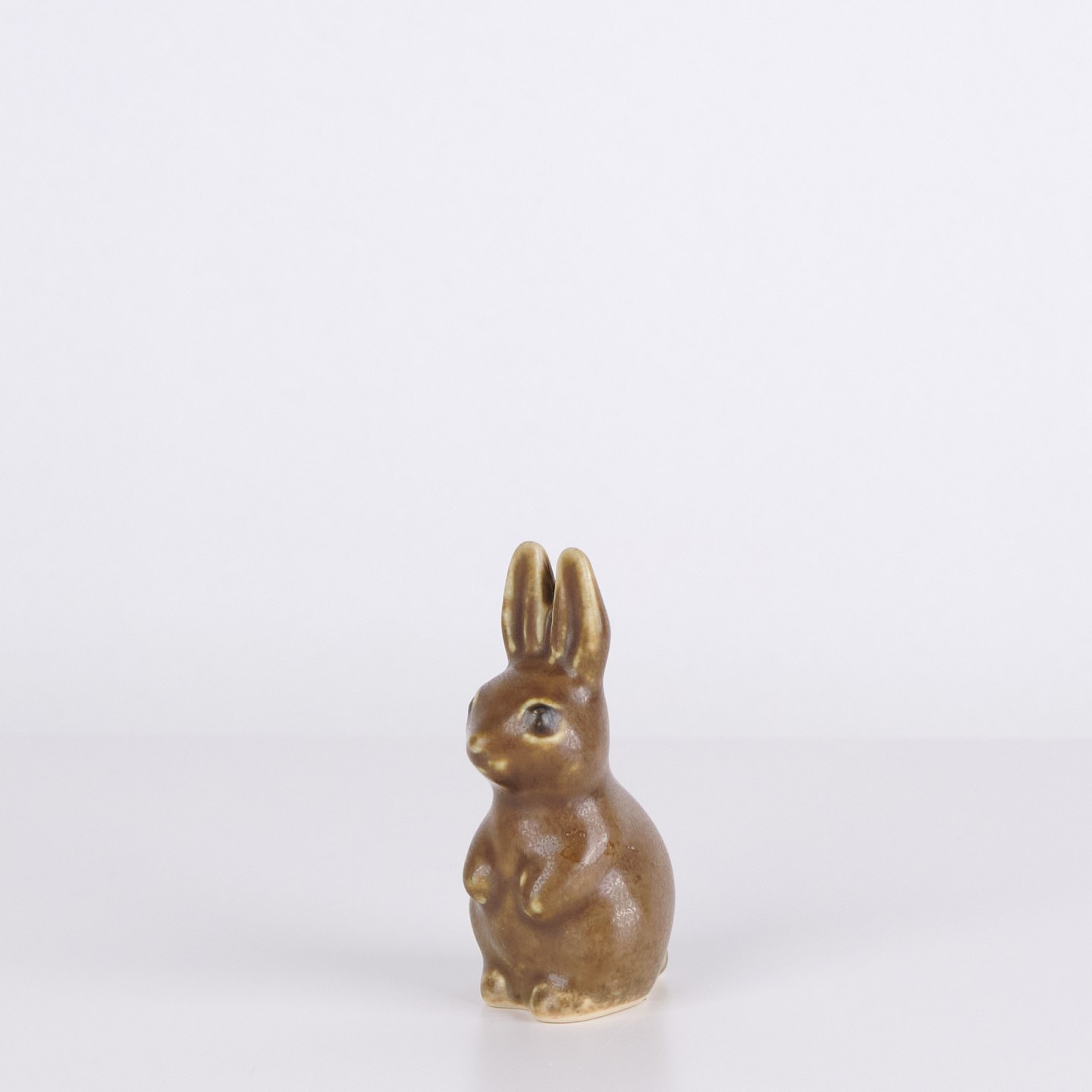 Kaninfigur udført i glaseret stentøj fra 1960’erne. Figuren har klassisk skandinavisk formsprog med brun glasur og fine håndmalede detaljer.