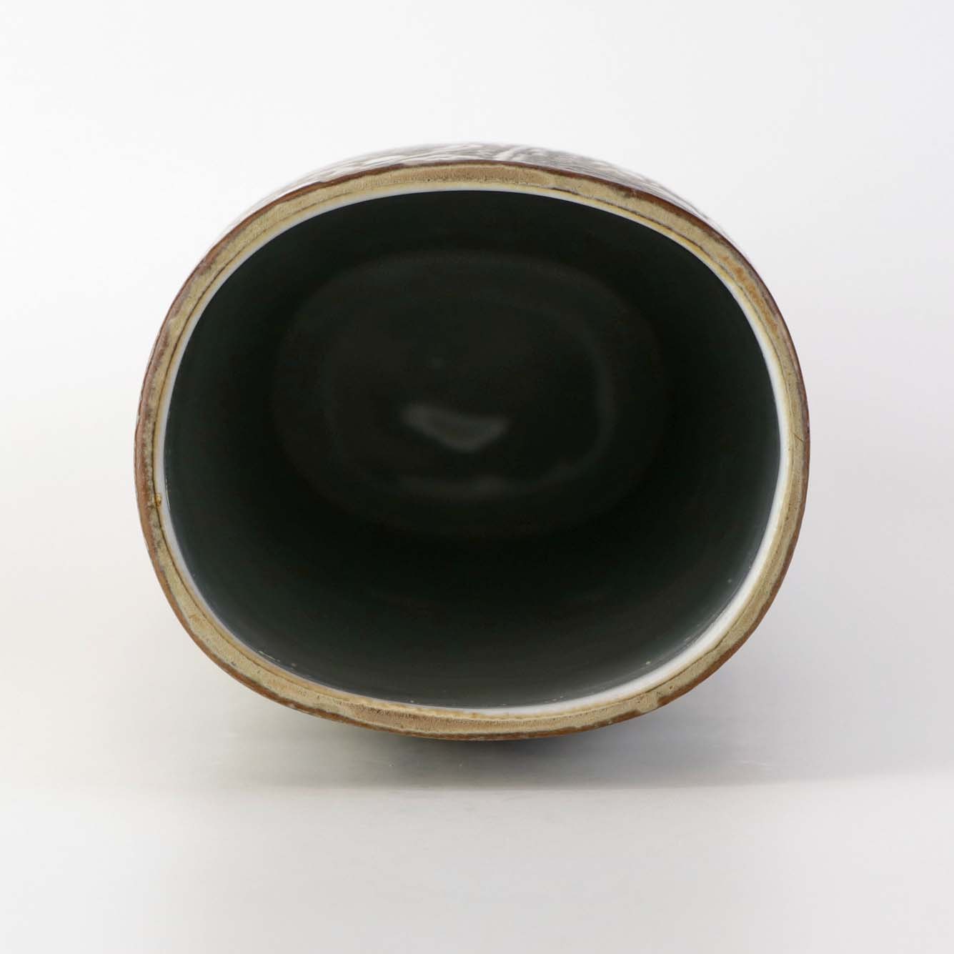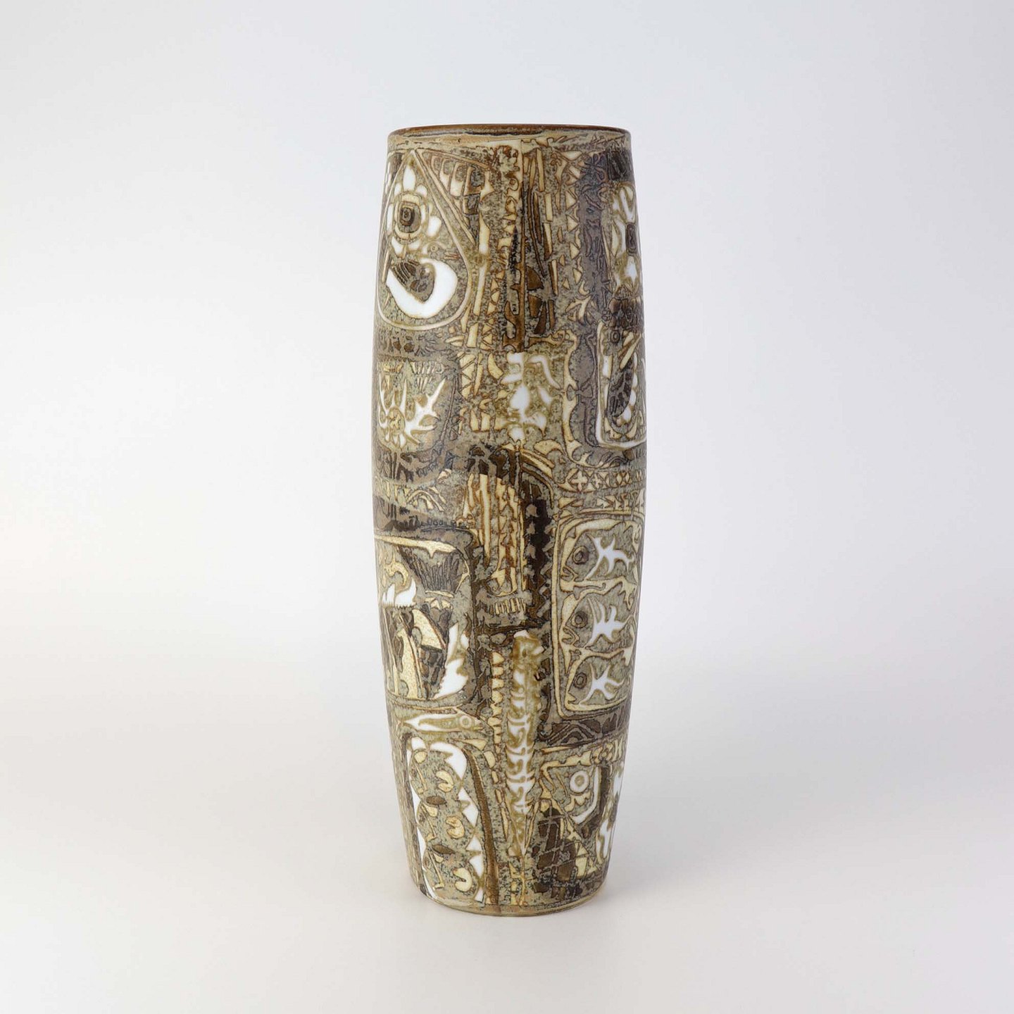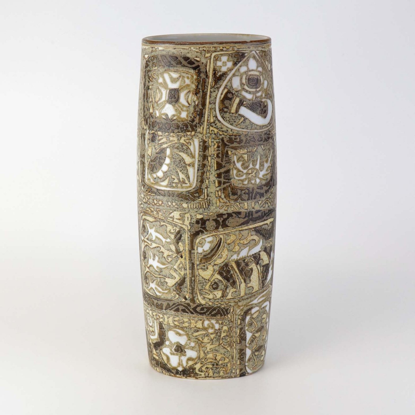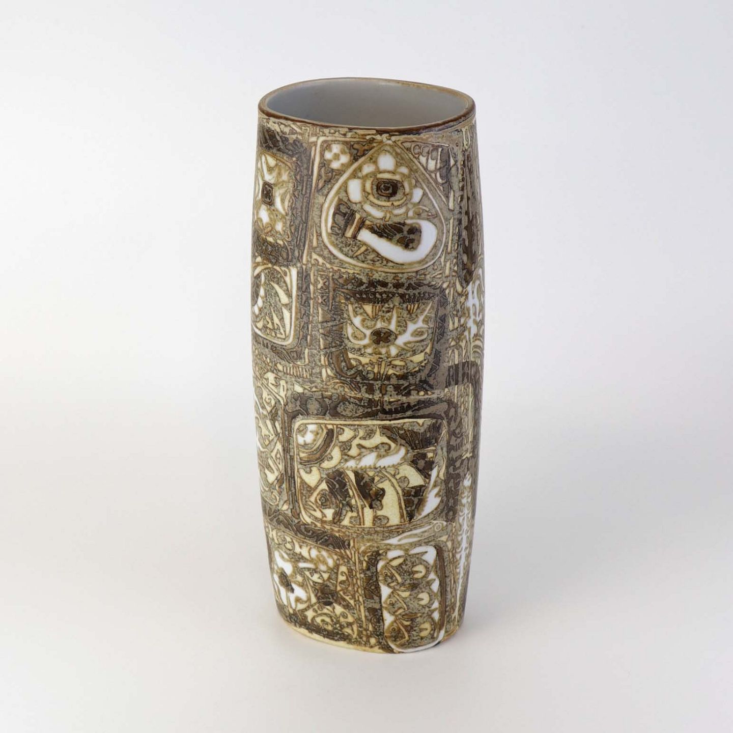 Høj oval vase i fajance fra serien Baca med mønster i brune nuancer. Nr. 719/3116