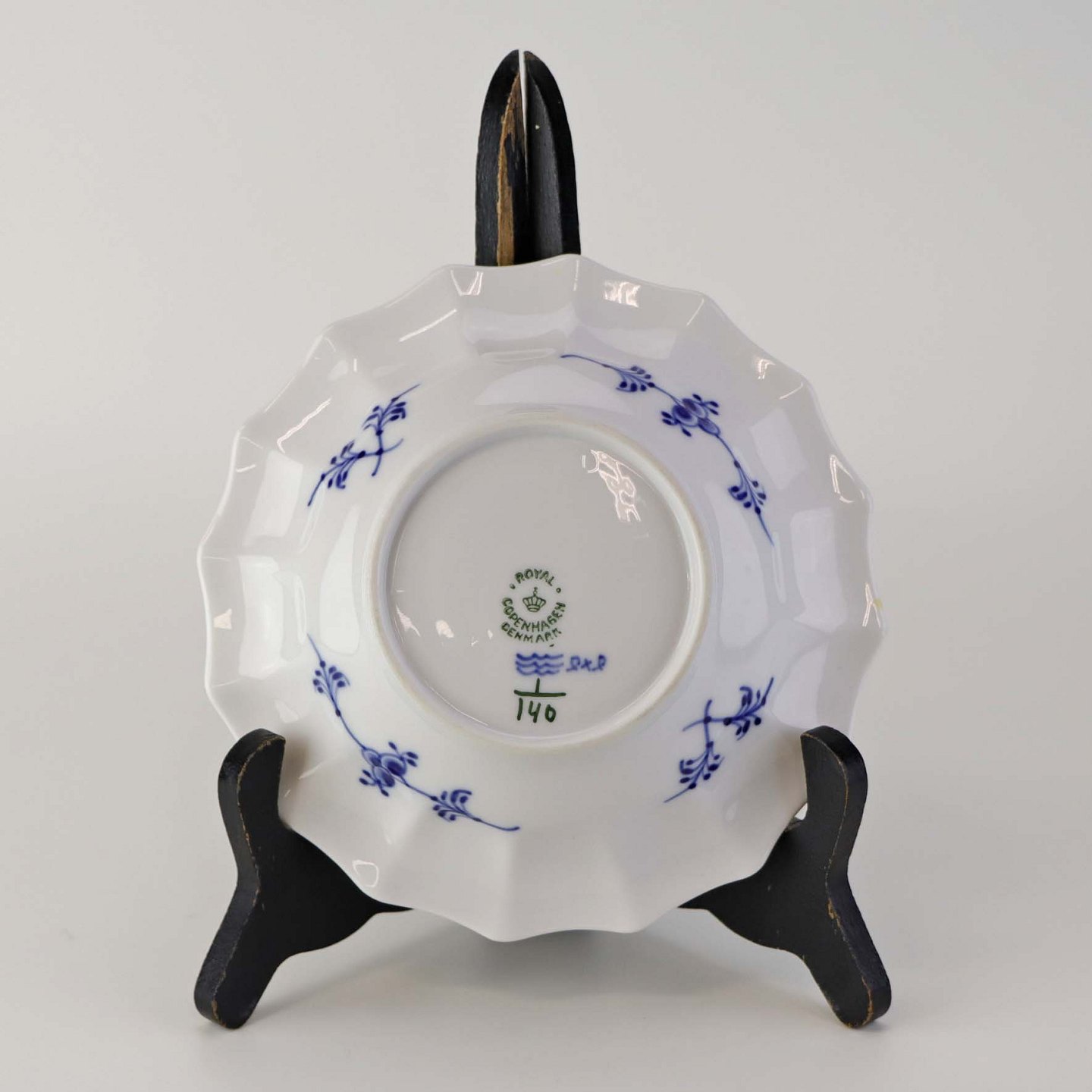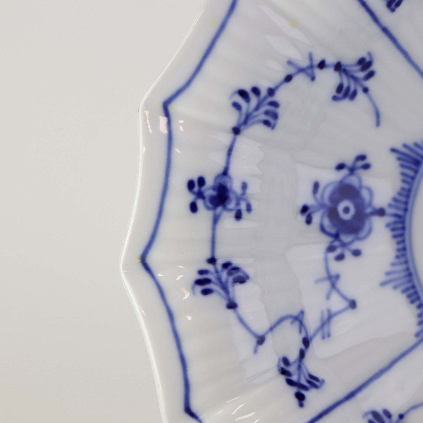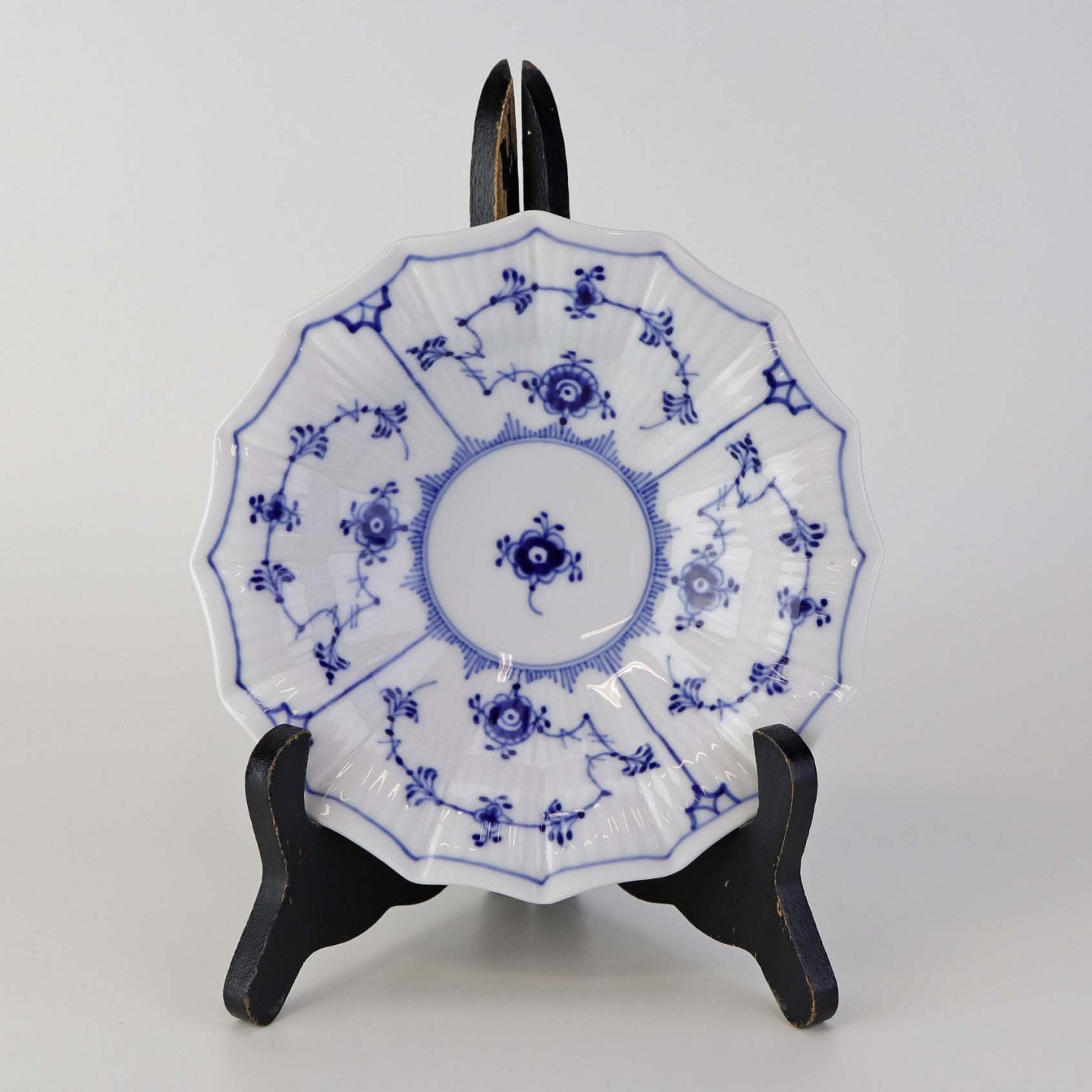 Kantet skål i kongeligt porcelæn fra stellet Musselmalet riflet.