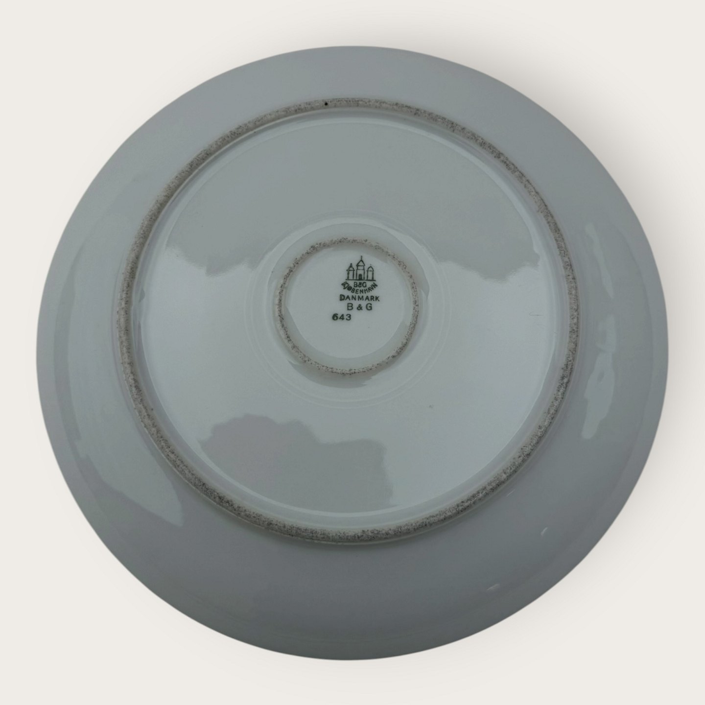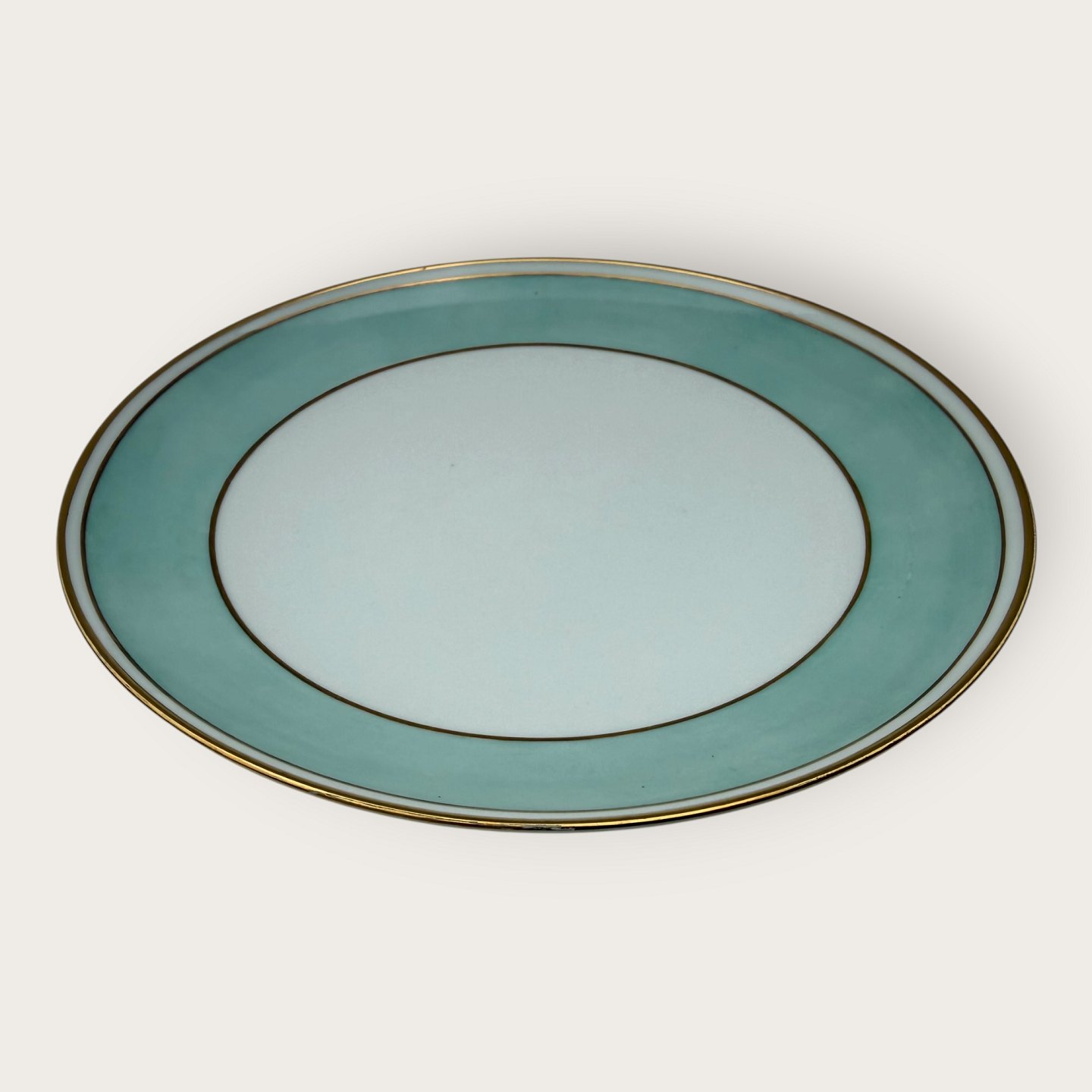 Bing & Grøndahl, Form 643 med bred turkis dekoration og guldkant, Middagstallerken, diameter 23,5cm, 1. sortering, *pæn stand*