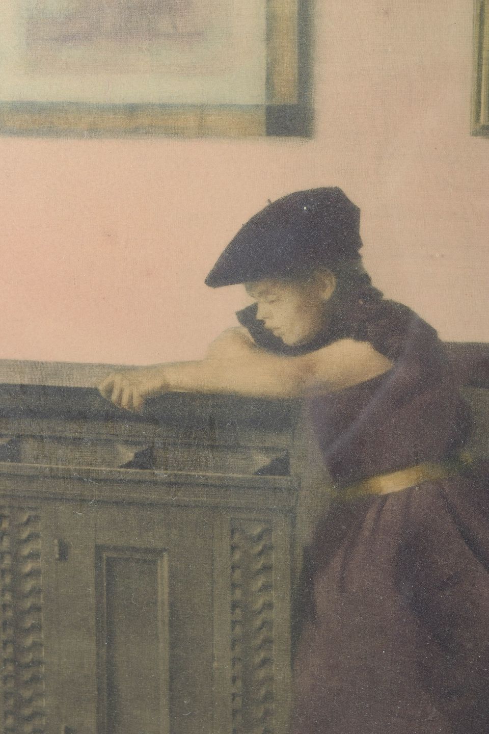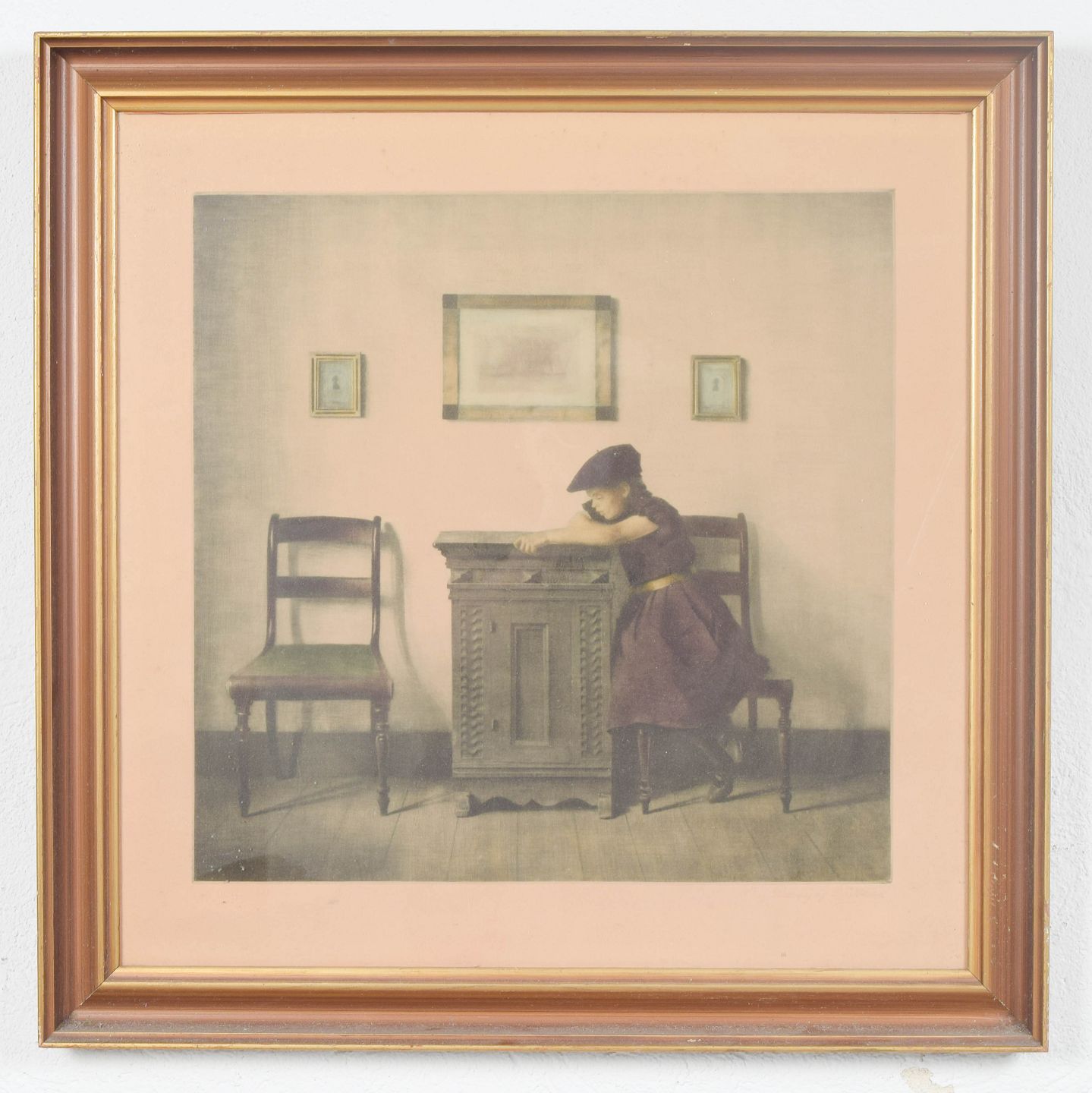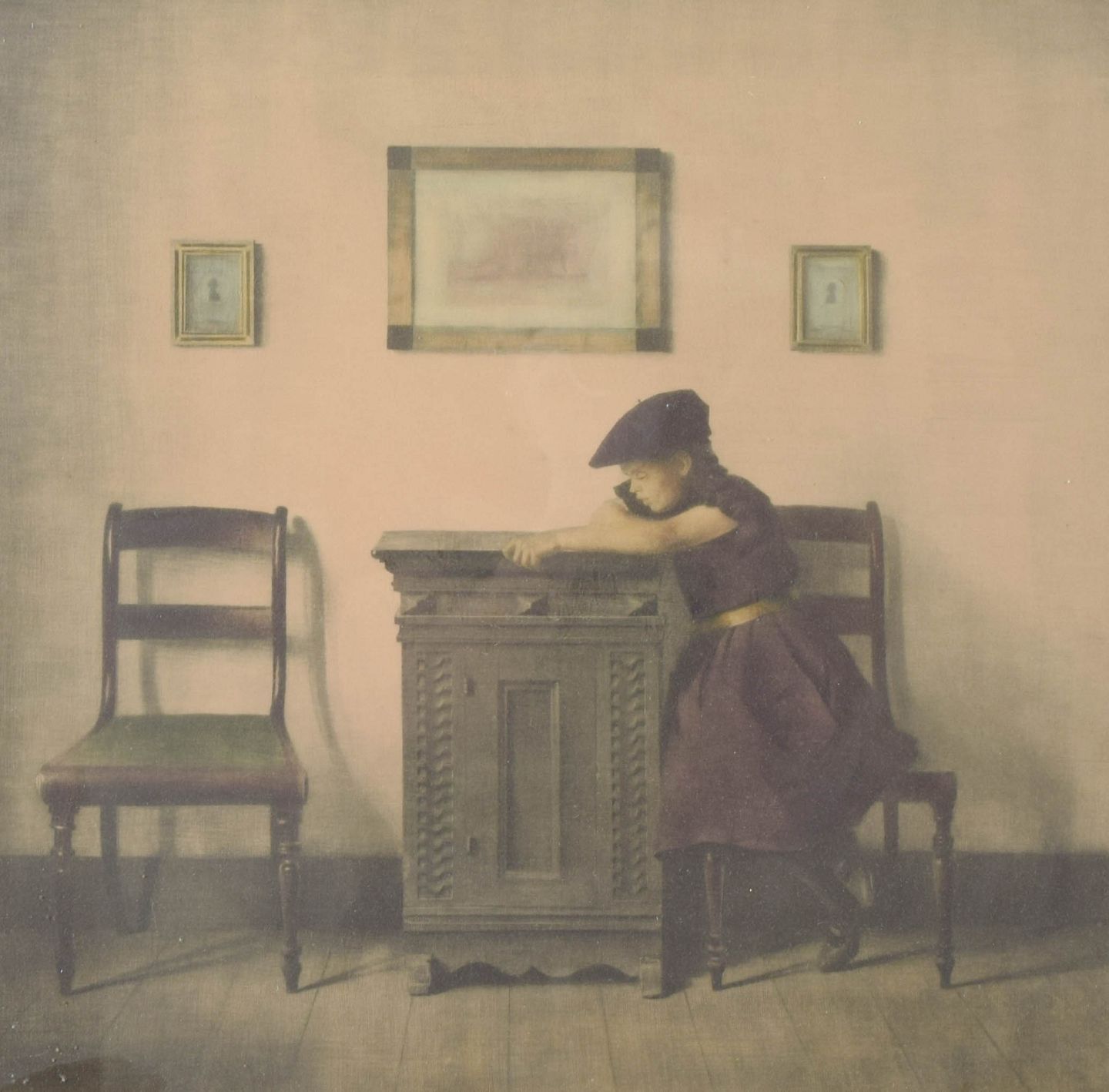 Quiet interior scene depicting a young girl leaning on a small piece of furniture, executed as an original etching on paper. The composition is defined by calm atmosphere, subdued tonalities, and an intimate spatial presence, characteristic of Ilsted’s exploration of light and domestic interiors.