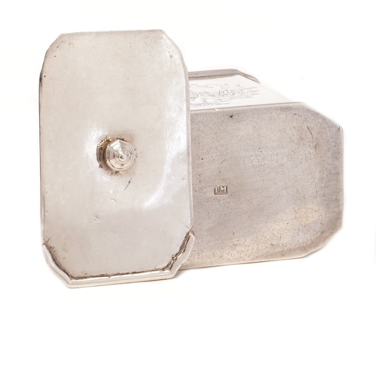 Sjælden Regence tedåse med skydelåg i sølv udført af Johan Mehl, Viborg, 1725-65