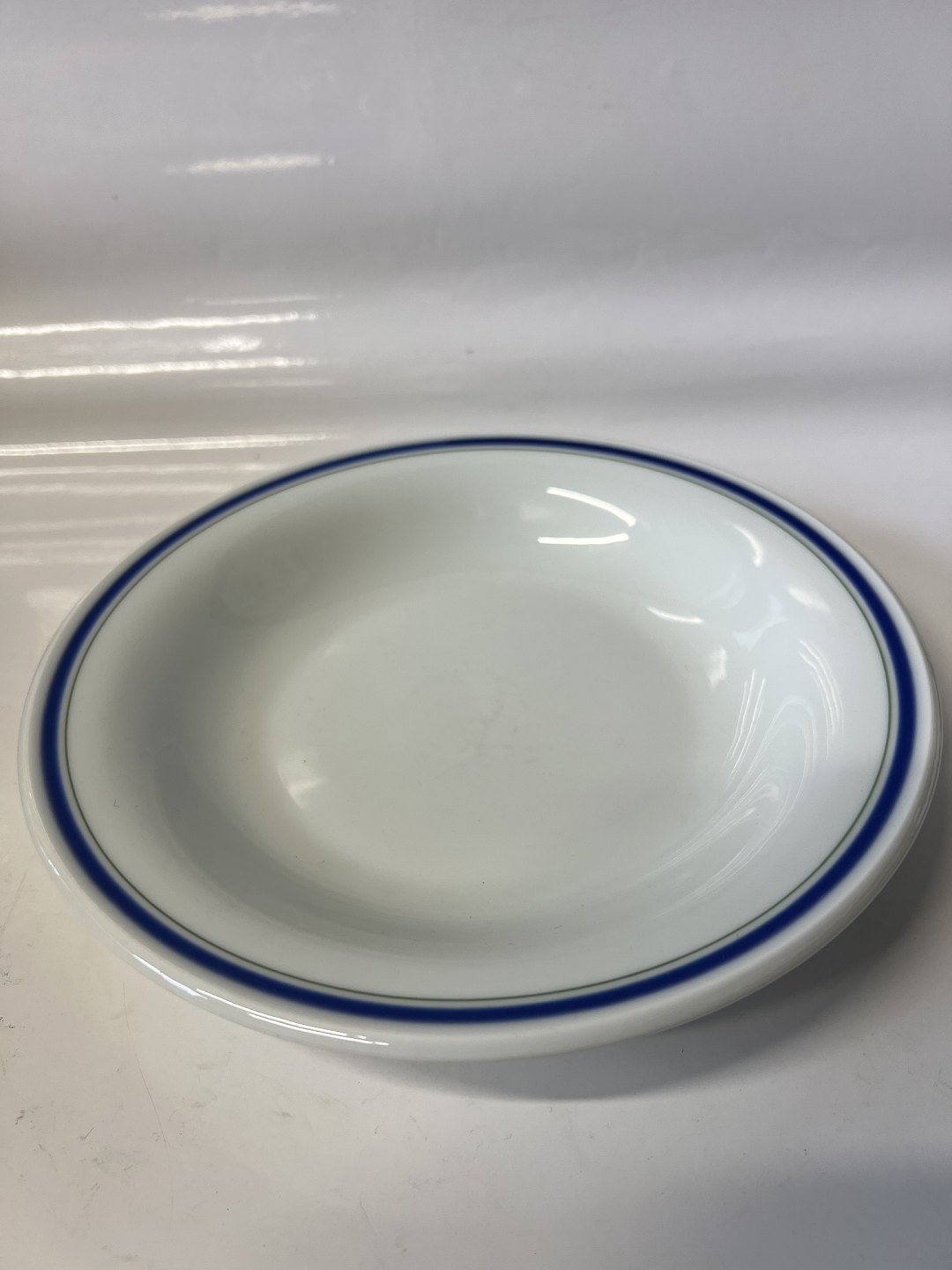 Bing og Grøndahl Jernporcelæn med blå og grøn kant Dyb tallerken Ø. 21,5 cm