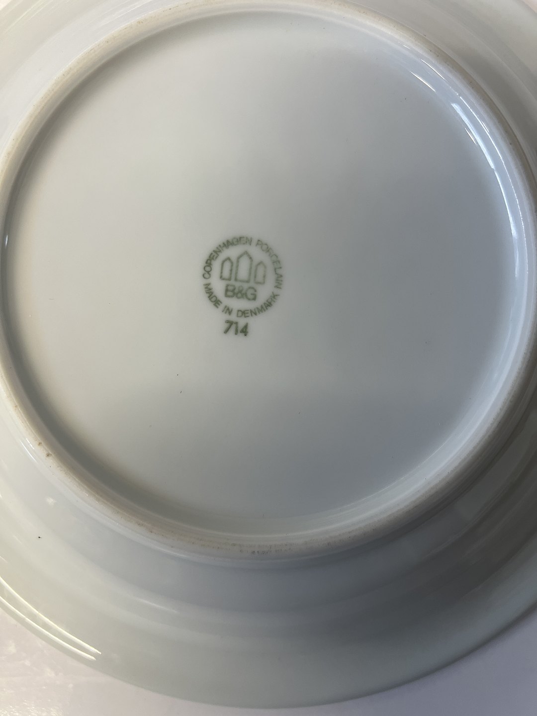 Bing og Grøndahl Jernporcelæn med blå og grøn kant Dyb tallerken