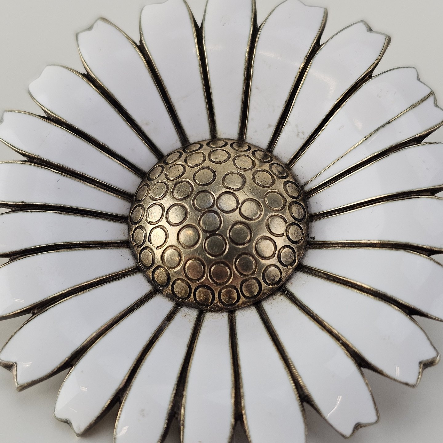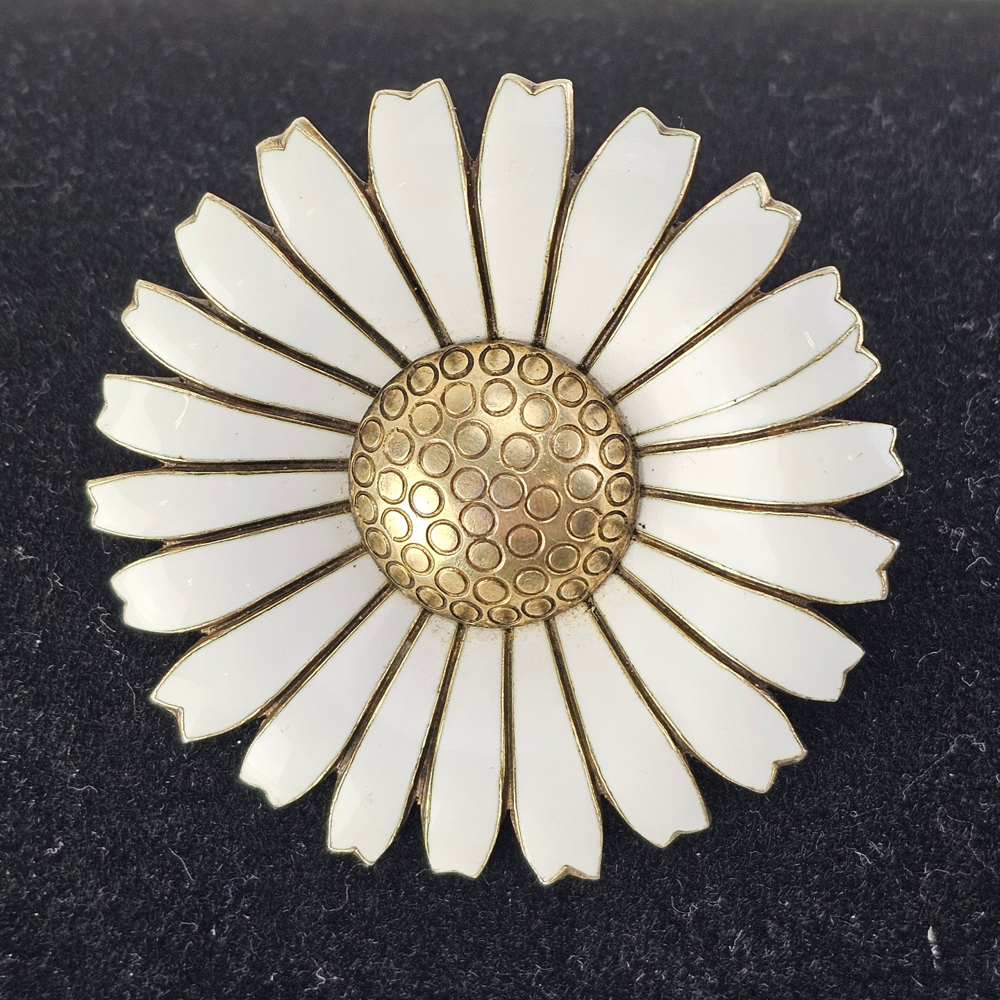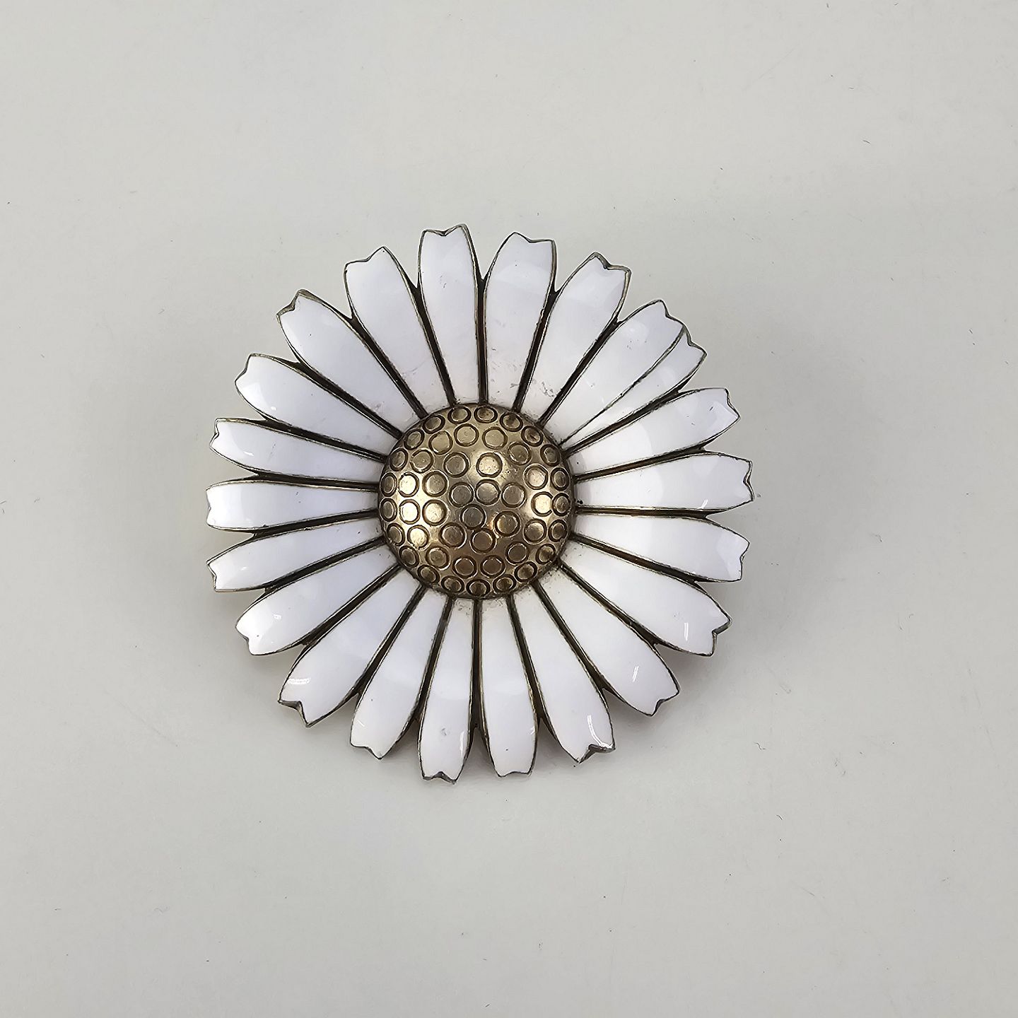 Marguerit broche af forgyldt sterlingsølv
