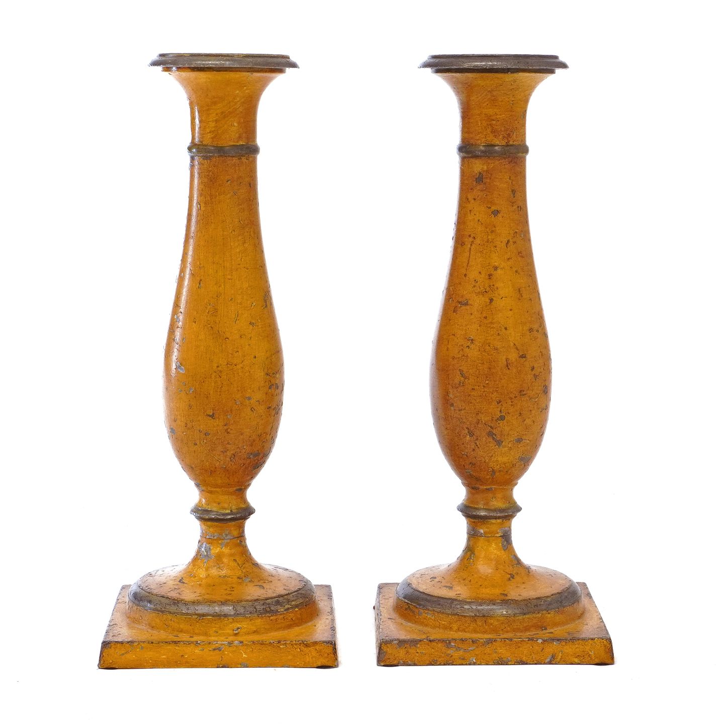Ein Par gelbe Tulpenleuchter aus Zinn. Dänemark um 1840. H: 21cm