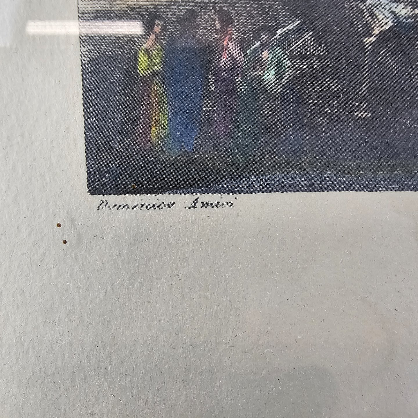 Bogtryk på papir med motiv af Piazza di Spagna i Rom, monteret i sort ramme
