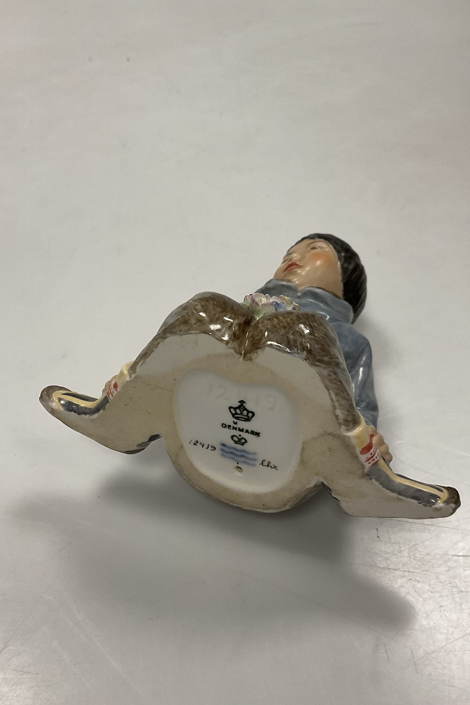 Royal Copenhagen Figur i Overglasur - Dreng med blomster fra Grønland No. 12419. Designet af Carl Martin-Hansen. Perfekt stand