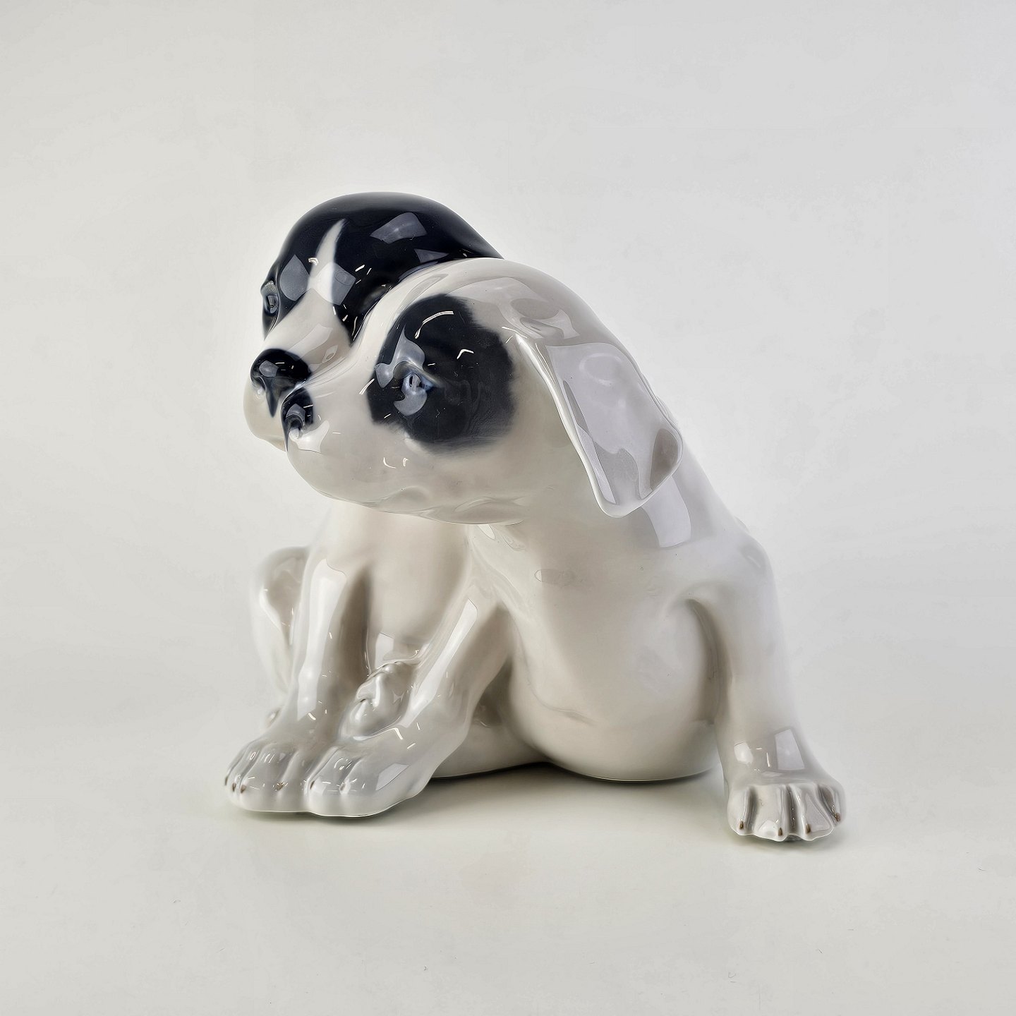 Figur i kongeligt porcelæn med motiv af to hundehvalpe