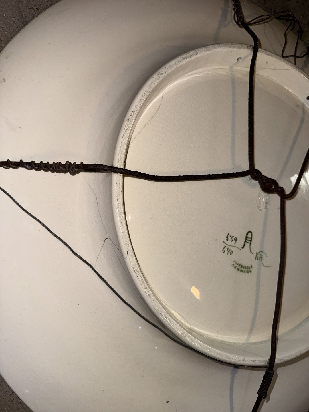 Stort fajancefad fra Aluminia, dekoreret af Christian Joachim med et motiv af en guldfasan omgivet af blomster og blade. Fabriksmærket på bagsiden. Som det fremgår af fotos er der flere revner efter skade på fadet. Mål: Ø. 45,5 cm FORSENDELSE IKKE MULIG - SKAL AFHENTES PÅ FREDERIKSBERG