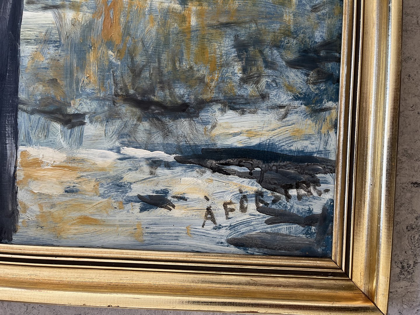 Maleri af A. Förster - Vinterparti med nøgne træer
