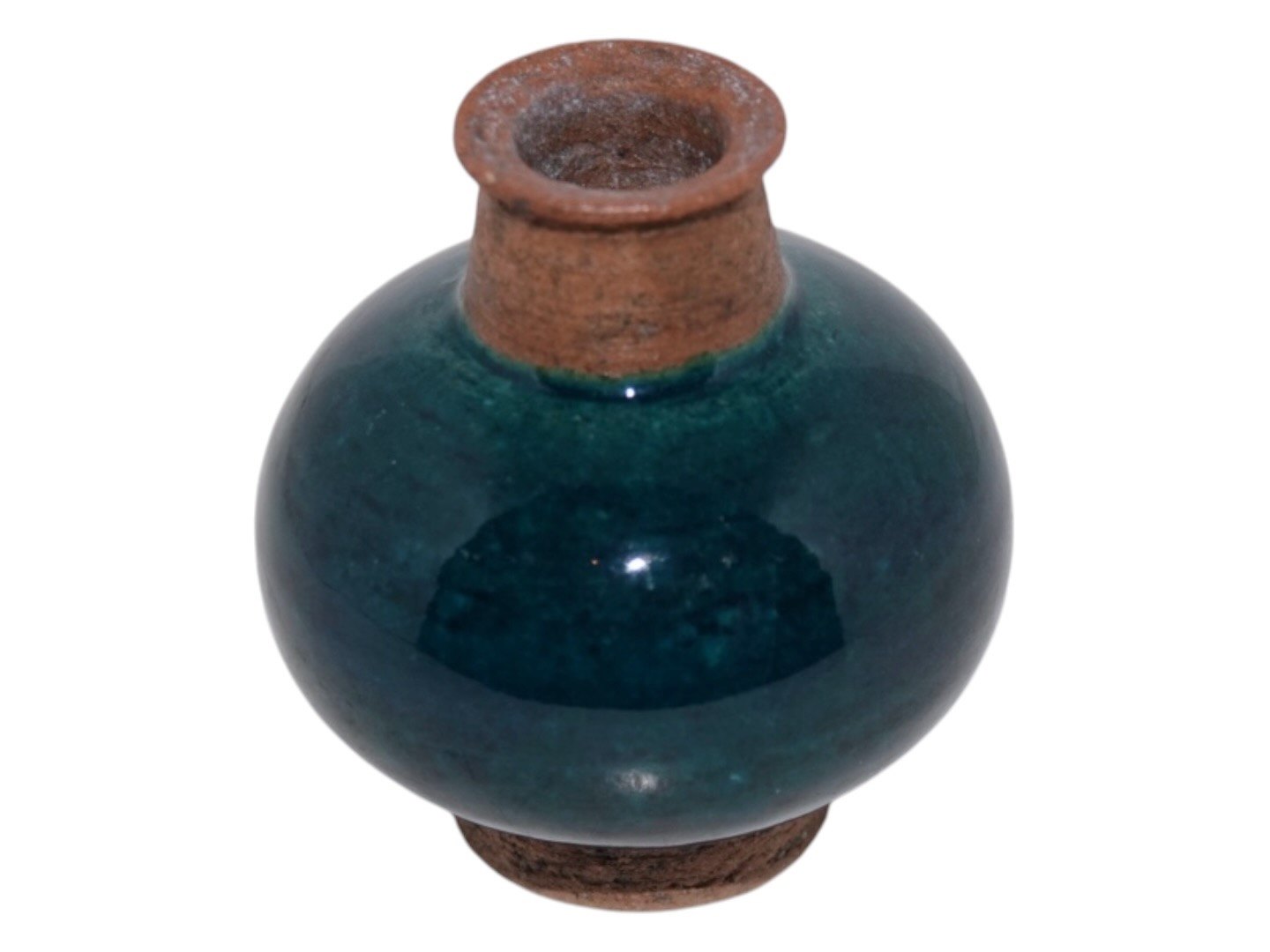 Miniature vase med blågrøn glasur