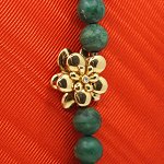 Pearl necklace with a 14k gold clasp, set with emerald and diamonds