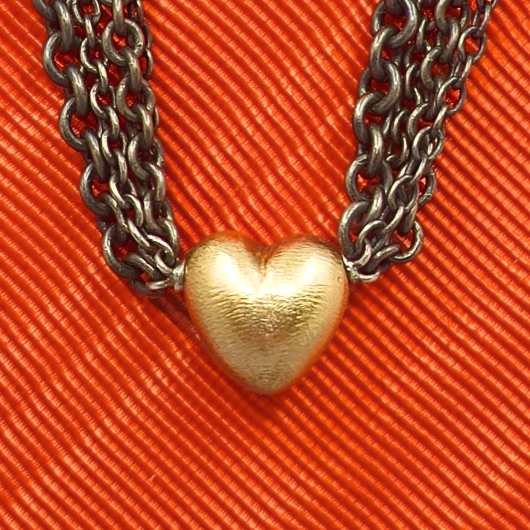 Ole Lynggaard, Heart clasp of 14k gold, with oxidized silver chain