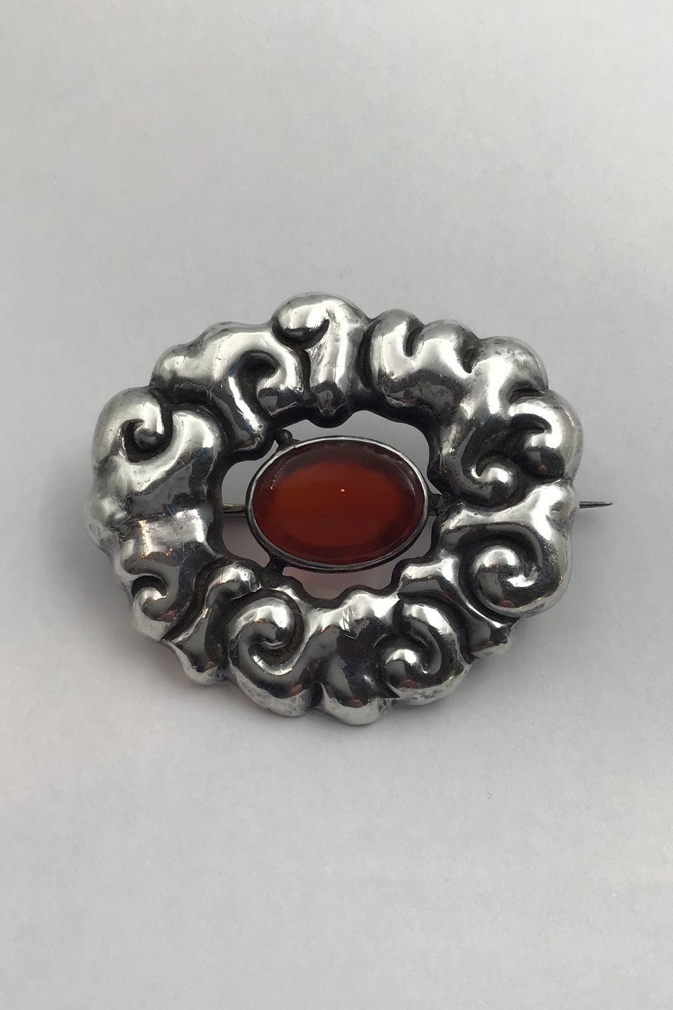 Thorvald Bindesbøll / Holger Kyster Silver Brooch with Amber Measures 4.3 cm x 5 cm (1.69 inch x 1.96 inch) Weight 17.4 gr (0.61 oz)