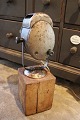 i afpudset metal med super patina fastmonteret på massiv gammel egetræs piedestal. (Kan bruges som bordlampe)