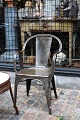 Classic French Tolix chair with armrests in acid-treated, polished and lacquered metal...