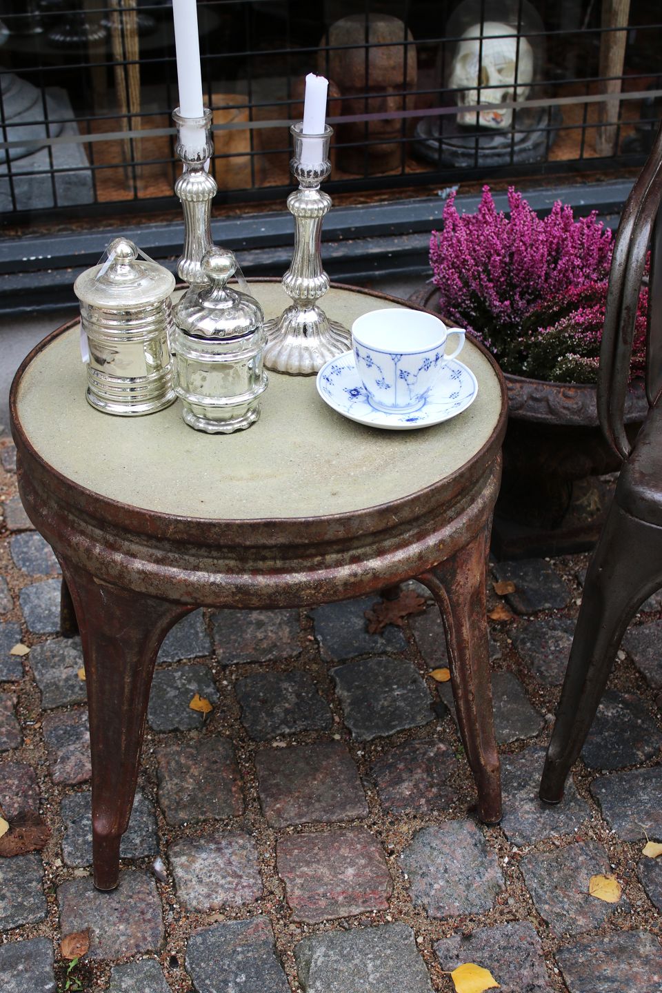Gammelt fransk Tolix sofabord / sidebord i afpudset metal fra omkring 1930-40 med fantastisk fin patina og med støbt beton topplade.