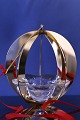 Holmegaard Golden Christmas, with tealight holder and red ribbon. Vintage 2004.