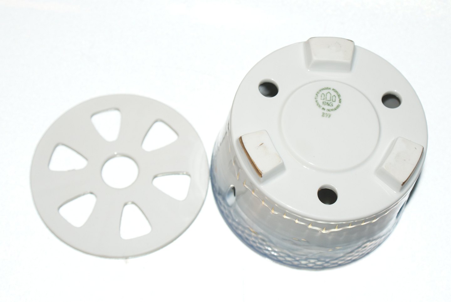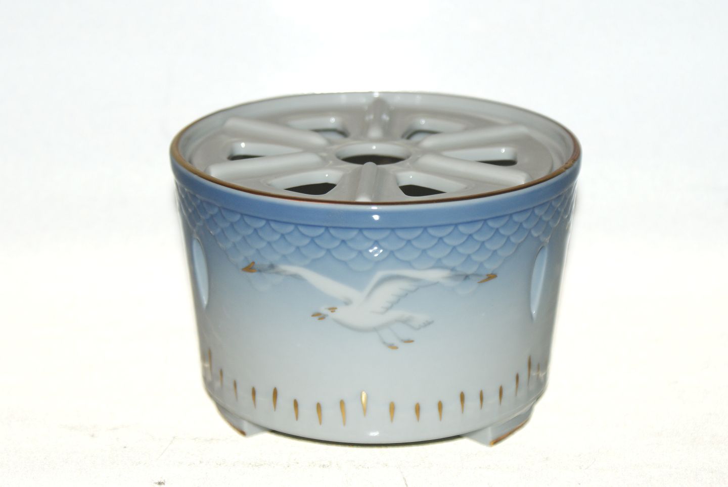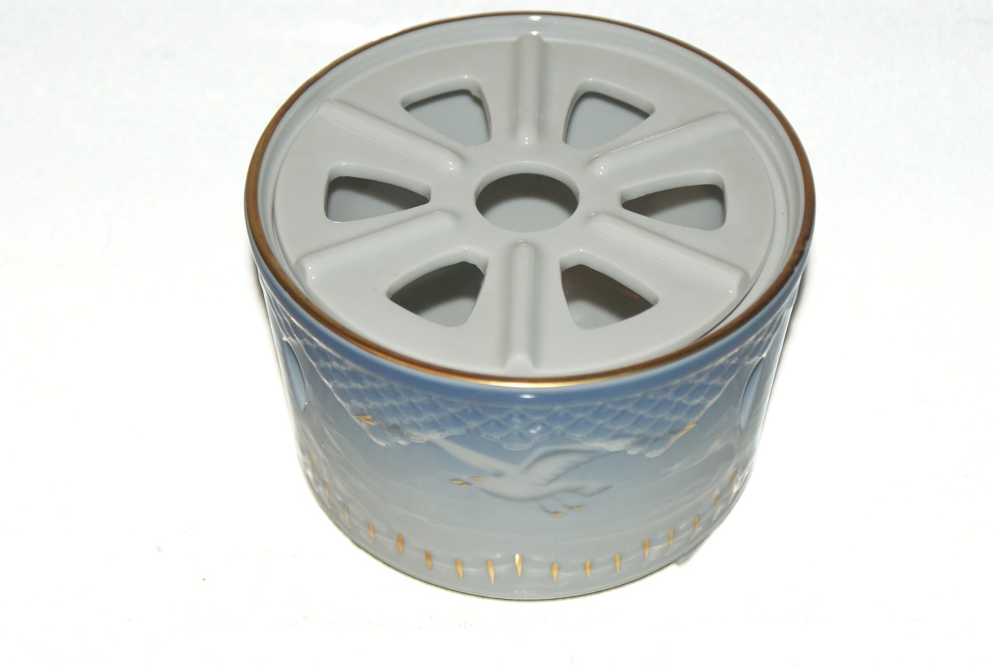 Beskrivelse: Bing & Grøndahl Mågestel med guldkant, Fyrfadsvarmer
