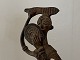 Description: Large Asian bronze figure in the form of a woman combing her hair while looking in the mirror.