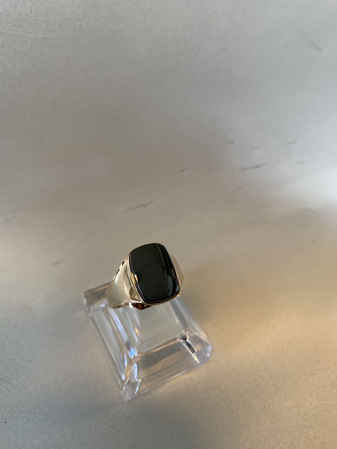 Description: Signet ring with hematite bloodstone in 14 carat gold.